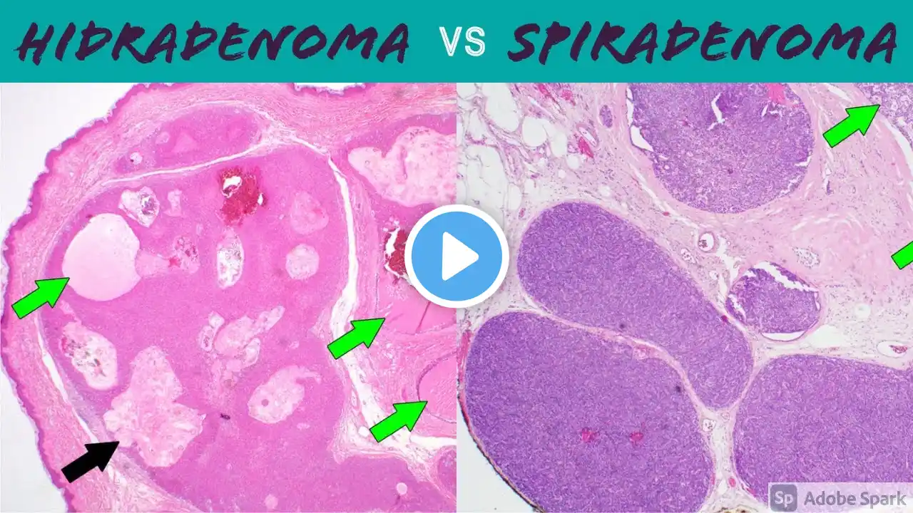 Excerpted from my dermpath board review video ( • Dermpath Board Review: 100 Classic Cases ) for my 5-Minute Pathology Pearls video series. WSI digital slide: https://pathpresenter.net/#/public/di... A complete organized library of all my videos, digital slides, pics, & sample pathology reports is available here: https://kikoxp.com/posts/5084 (dermpath) & https://kikoxp.com/posts/5083 (bone/soft tissue sarcoma pathology). Check out my adnexal tumor review videos: https://kikoxp.com/posts/3824 https://kikoxp.com/posts/2767 See also my playlist of all of my videos on adnexal tumor dermpath: • Skin Adnexal Tumors You also might like my Dermatopathology survival guide textbook: http://bit.ly/2Te2haB Also check out these papers from the literature: Fulton E, Kaley JR, Gardner JM. Skin Adnexal Tumors in Plain Language: A Practical Approach for the General Surgical Pathologist. Free PDF: https://www.archivesofpathology.org/d... Jedrych J, Leffell D, McNiff JM. Desmoplastic trichoepithelioma with perineural involvement: a series of seven cases. https://www.ncbi.nlm.nih.gov/pubmed/2... LN Clark, HR Elwood, EE Uhlenhake, BR Smoller, SC Shalin, JM Gardner. Nuclear factor XIIIa staining (clone AC-1A1 mouse monoclonal) is a highly sensitive marker of sebaceous differentiation in normal and neoplastic sebocytes. https://www.ncbi.nlm.nih.gov/pubmed/2... EE Uhlenhake, LN Clark, BR Smoller, SC Shalin, JM Gardner. Nuclear factor XIIIa staining (clone AC-1A1 mouse monoclonal) is a sensitive and specific marker to discriminate sebaceous proliferations from other cutaneous clear cell neoplasms. https://www.ncbi.nlm.nih.gov/pubmed/2... This video is geared towards medical students, pathology or dermatology residents, or practicing pathologists or dermatologists. Of course, this video is for educational purposes only and is not formal medical advice or consultation. Presented by Jerad M. Gardner, MD. Please subscribe to my channel to be notified of new pathology teaching videos. Follow me on: Snapchat: JMGardnerMD Twitter: @JMGardnerMD Instagram: @JMGardnerMD Facebook: / jmgardnermd