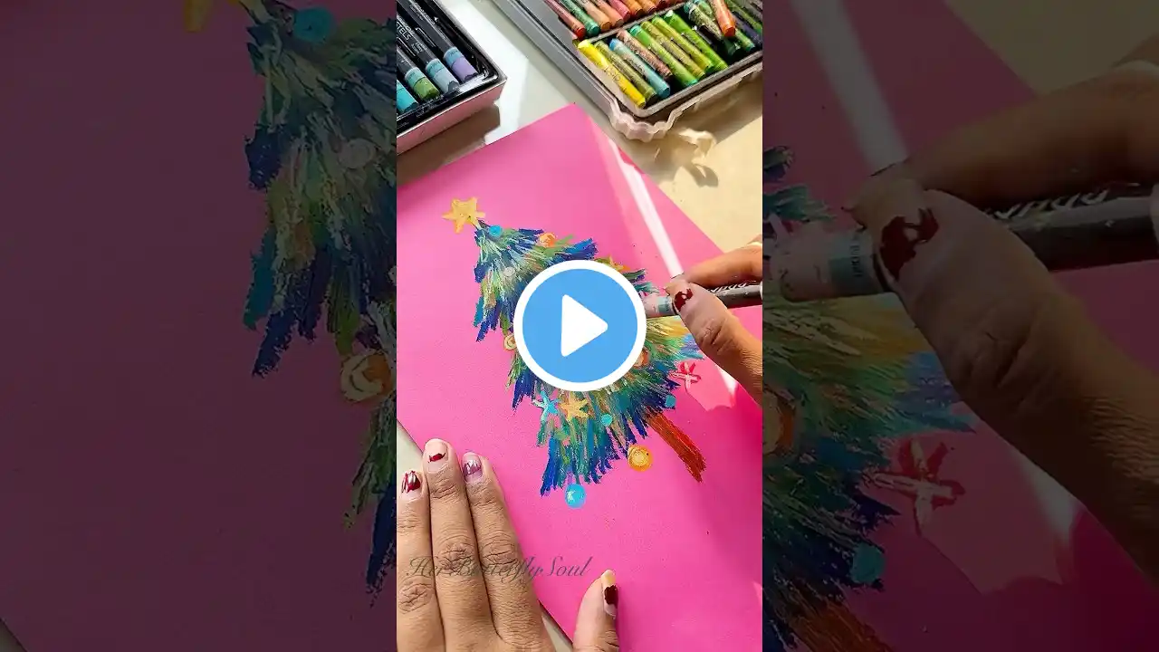 🎄 Christmas Tree Painting with DOMS Oil Pastels | Festive Art ✨