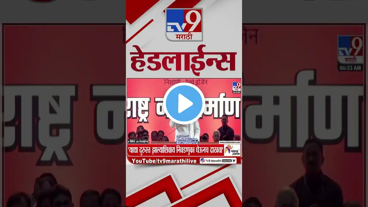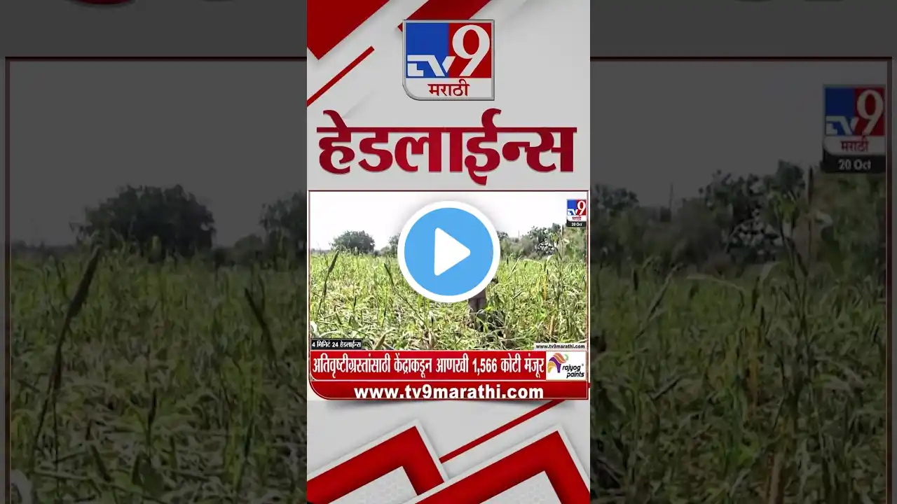 Tv9 Marathi News Top Headline Today | 18 October 2025 | 11 PM | 4 Minute 24 Headline Maharashtra #election #UddhavThackeray #EknathShinde #ManojJarange #ManojJarangePatil #PankajaMunde #RajThackeray #RSS #EknathShinde #shivajipark #BhagwanGad ##ManojJarangePatil #MaharashtraPolitical #Maharashtra #MumbaiShivenaMelava #shivsena #uddhavThackeray #Eknathshinde #Maharashtrapolitics #UddhavThackerayledShivSenafactions #BMCElections2025 #SushilKediaMarathiLanguage#UddhavRajThackerayjointvictoryrallyUddhavRaj #Thackerayvictoryrally #uddhavThackeraylive #DevendraFadnavis #ajitpawar #Eknathshinde #maharashtrapolitics #mahayuti #SharadPawar #rajthackeray #uddhavthackeray #mns #shivsena #MarathiVSHindi #PrakashAmbedkar #Congress, #VBA #shivsena #UBT #MNS महाराष्ट्रासह जगभरातल्या बातम्या सर्वात वेगवान पाहण्यासाठी आताच क्लिक करा : https://www.youtube.com/live/KdQ44_AGuR4 #MahayutiGovernment #Sharadpawar#NanaPatole #SanjayRaut #MaharashtraPolitics #MaharashtraNews #PMNarendraModi #EknathShinde #MVAvsMahayuti #UddhavThackeray #SharadPawar टीव्ही ९ मराठीवर राजकारणातल्या बातम्यांचे अपडेट पाहा सर्वात आधी! tv9 marathi live update पाहण्यासाठी लॉग इन करा https://www.tv9marathi.com/ tv9 marathi चे यूट्यूब चॅनेल सब्स्क्राईब करण्याची लिंक https://goo.gl/xRU2XT marathi news headline | marathi news mumbai | marathi news maharashtra |marathi news breaking |marathi news | tv9 marathi batmya video https://www.tv9marathi.com/ is a 24/7 Marathi-language News Channel based in Mumbai, Maharashtra that launched in 2009. TV9 group is India's largest media group. Get the all Breaking news, latest top stories, current affairs, Mumbai News, Pune News on TV9 Marathi. ► Facebook: / tv9marathi ► Twitter: / tv9marathi ►Youtube : / tv9marathilive ► Download TV9 Marathi App : https://play.google.com/store/apps/de... ► Latest Video : / @tv9marathilive ► Special Reports : • Playlist ► 4 Minutes 24 Headlines : • 4 मिनिट 24 हेडलाईन्स | 4 Minutes 24 Headlines ► टॉप 9 न्यूज | TOP 9 News : • टॉप 9 न्यूज | TOP 9 News ► Superfast 50 : • Superfast 50 | सुपरफास्ट 50 ► Mahafast News 100 : • Maharashtra 100 News | सर्व बातम्या | महाफ... Maharashtra election, #marathwada water logging , Beed Rain, Jalna Rain, Mahayuti, Flood Maharashtra Chief Minister, Devendra Fadnavis, Eknath Shinde, Ajit Pawar, Marathwada Rain, Eknath Shinde , Ajit Pawar , Mumbai Rain, Manoj Jarange Patil, Maratha Reservation, Laxman Hake, OBC , Chhagan Bhujbal