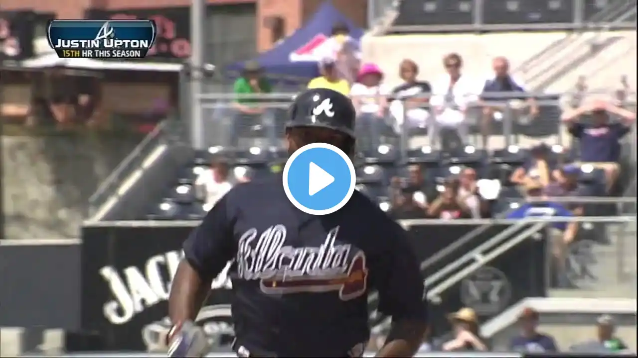 4/18/13: Justin Upton cranks a long home run to left field to put the Braves up, 4-3, in the top of the fifth inning