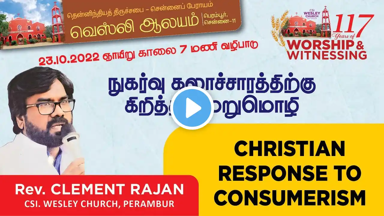 CSI WESLEY CHURCH, PERAMBUR, 23.10.2022, Sunday Worship BY REV. CLEMENT RAJAN