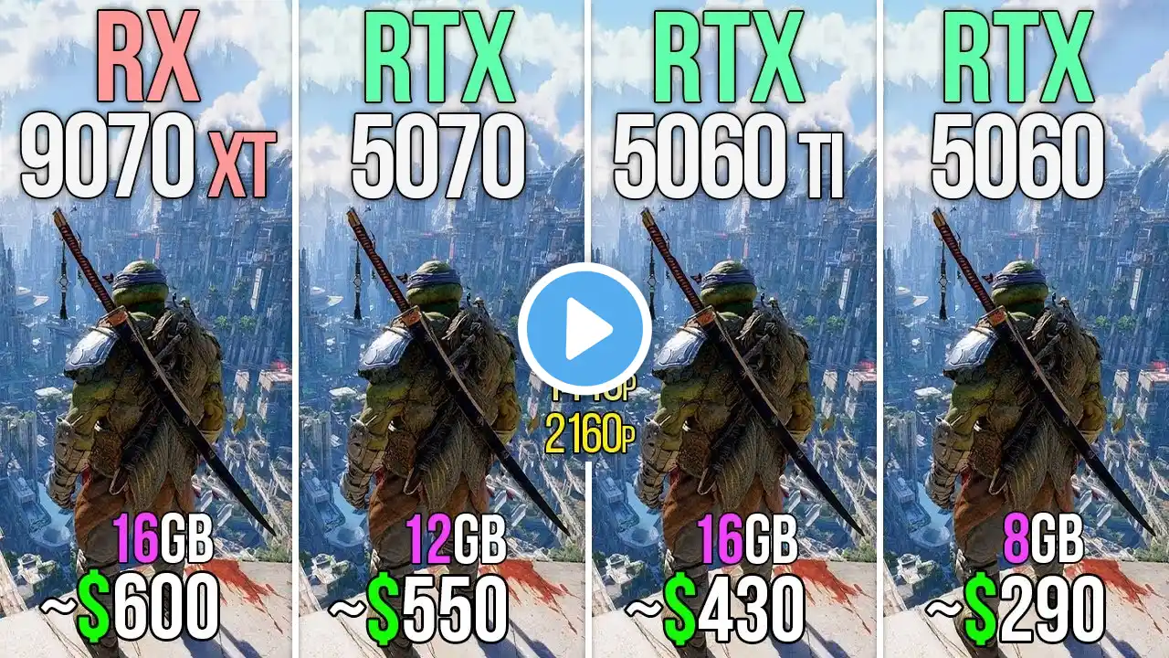 RX 9070 XT vs RTX 5070 vs RTX 5060 TI 16GB vs RTX 5060 - Test in 20 Games