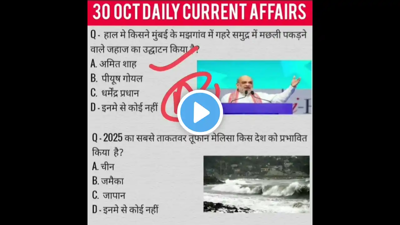 30 October 2025 Current Affairs #ghatnachakravarshikicurrentaffairs Shortvideo