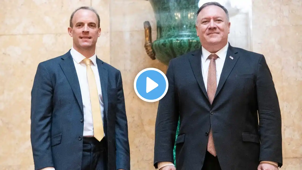 British Foreign Secretary Dominic Raab welcomes his US counterpart Mike Pompeo at Lancaster House in London as Pompeo visits the UK for talks. Subscribe to AFP and activate your notifications to get the latest news 🔔    / @afp Â