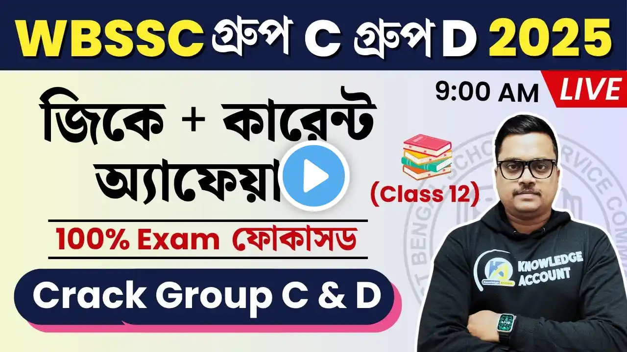 Hey, WBSSC aspirants! đ Your ultimate GK and Current Affairs preparation starts here. In this video, we'll dive into the most expected MCQs for the WBSSC Group C & D 2025 exams. This isn't just a practice session; it's a strategic class designed to boost your score and help you crack the exam on your first attempt. We'll cover a wide range of subjects, from Indian History and Polity to the latest Current Events, all in a rapid-fire MCQ format. Our goal is to make sure you're ready for every question the WBSSC throws at you. WBSSC Group C & D āĻĒāϰā§āĻā§āώāĻžāϰ āĻāύā§āϝ General Knowledge āĻāĻŦāĻ Current Affairs-āĻāϰ āϏā§āϰāĻž āĻĒā§āϰāϏā§āϤā§āϤāĻŋ āĻāĻāύ āĻāĻĒāύāĻžāϰ āĻšāĻžāϤā§āϰ āĻŽā§āĻ ā§āϝāĻŧāĨ¤ āĻāĻ āĻāĻŋāĻĄāĻŋāĻāϤ⧠āĻāĻŽāϰāĻž āĻāϞā§āĻāύāĻž āĻāϰāĻŦ āϏāĻŦāĻā§āϝāĻŧā§ āĻā§āϰā§āϤā§āĻŦāĻĒā§āϰā§āĻŖ MCQ āĻĒā§āϰāĻļā§āύ āύāĻŋāϝāĻŧā§, āϝāĻž 2025 āϏāĻžāϞā§āϰ āĻĒāϰā§āĻā§āώāĻžāϝāĻŧ āĻāϏāĻžāϰ āϏāĻŽā§āĻāĻžāĻŦāύāĻž āϏāĻŦāĻā§āϝāĻŧā§ āĻŦā§āĻļāĻŋāĨ¤ āĻāĻāĻŋ āĻļā§āϧ⧠āĻāĻāĻāĻŋ āĻā§āϞāĻžāϏ āύāϝāĻŧ, āĻāĻāĻŋ āĻāĻŽāύ āĻāĻāĻāĻŋ āĻā§āĻļāϞ āϝāĻž āĻāĻĒāύāĻžāĻā§ āĻĒāϰā§āĻā§āώāĻžāϝāĻŧ āϏāϰā§āĻŦā§āĻā§āĻ āύāĻŽā§āĻŦāϰ āĻĒā§āϤ⧠āĻāĻŦāĻ āĻĒā§āϰāĻĨāĻŽ āĻĒā§āϰāĻā§āώā§āĻāĻžāϤā§āĻ āϏāĻĢāϞ āĻšāϤ⧠āϏāĻžāĻšāĻžāϝā§āϝ āĻāϰāĻŦā§āĨ¤ āĻāĻāĻžāύ⧠āĻāĻŽāϰāĻž āĻāĻžāϰāϤā§āϰ āĻāϤāĻŋāĻšāĻžāϏ, āϏāĻāĻŦāĻŋāϧāĻžāύ āĻĨā§āĻā§ āĻļā§āϰ⧠āĻāϰ⧠āϏāĻžāĻŽā§āĻĒā§āϰāϤāĻŋāĻ āĻāĻāύāĻžāĻŦāϞāĻŋ āĻĒāϰā§āϝāύā§āϤ āϏāĻŦ āĻā§āϰā§āϤā§āĻŦāĻĒā§āϰā§āĻŖ āĻŦāĻŋāώāϝāĻŧ āĻāĻāĻžāϰ āĻāϰāĻŦāĨ¤ āĻāĻ āĻā§āϞāĻžāϏāĻāĻŋ āĻāĻĒāύāĻžāĻā§ WBSSC āĻĒāϰā§āĻā§āώāĻžāϰ āĻāύā§āϝ āϏāĻŽā§āĻĒā§āϰā§āĻŖ āĻĒā§āϰāϏā§āϤā§āϤ āĻāϰāĻŦā§āĨ¤ What you will learn in this class: Most Important GK Questions based on the official WBSSC syllabus. Latest Current Affairs MCQs crucial for the 2025 exam. Smart techniques to solve MCQs quickly and accurately. A proven strategy to maximize your score in the GK section. āĻāĻ āĻā§āϞāĻžāϏ⧠āĻāĻĒāύāĻŋ āĻā§ āĻā§ āĻļāĻŋāĻāĻŦā§āύ: WBSSC āϏāĻŋāϞā§āĻŦāĻžāϏ āĻ āύā§āϝāĻžāϝāĻŧā§ āϏāĻŦāĻā§āϝāĻŧā§ āĻā§āϰā§āϤā§āĻŦāĻĒā§āϰā§āĻŖ General Knowledge āĻĒā§āϰāĻļā§āύāĨ¤ āϏāĻžāĻŽā§āĻĒā§āϰāϤāĻŋāĻ āĻāĻāύāĻžāĻŦāϞāĻŋ (Current Affairs) āĻĨā§āĻā§ āĻāϏāĻž MCQ āĻĒā§āϰāĻļā§āύ, āϝāĻž 2025 āĻĒāϰā§āĻā§āώāĻžāϰ āĻāύā§āϝ āĻ āϤā§āϝāύā§āϤ āĻāϰā§āϰāĻŋāĨ¤ āĻĻā§āϰā§āϤ āĻāĻŦāĻ āύāĻŋāϰā§āĻā§āϞāĻāĻžāĻŦā§ MCQ āϏāĻŽāĻžāϧāĻžāύ āĻāϰāĻžāϰ āĻāĻžāϰā§āϝāĻāϰ⧠āĻā§āĻļāϞāĨ¤ General Knowledge-āĻ āϏāϰā§āĻŦā§āĻā§āĻ āϏā§āĻā§āϰ āĻāϰāĻžāϰ āĻāύā§āϝ āĻāĻāĻāĻŋ āϏāĻ āĻŋāĻ āĻā§āĻļāϞāĨ¤ đ āĻāĻžāĻāϰāĻŋāϰ āĻĒā§āϰāϏā§āϤā§āϤāĻŋ āύāĻŋāĻā§āĻā§āύ? āĻāĻŽāĻžāĻĻā§āϰ āϏāĻā§āĻā§ āϝā§āĻā§āϤ āĻšāύ āĻāĻāύāĻ â đĄ Join FREE Telegram for PDF & Practice: Knowledge Account đą Complete Course / Mock Test āĻāϰ āĻāύā§āϝ āĻāĻŽāĻžāĻĻā§āϰ App āĻĄāĻžāĻāύāϞā§āĻĄ āĻāϰā§āύ â đ¸ āĻŦāĻžāĻāϞāĻž āĻāĻžāώāĻžā§ āĻĒā§āϰāϏā§āϤā§āϤāĻŋāϰ āĻāύā§āϝ: đ˛ "Knowledge Account Official" App đ https://play.google.com/store/apps/de... _____________ Contact for Consultation _______________ WhatsApp - 9593430522 #WBSSCGroupC #WBSSCGroupD #WBSSC2025 #WBSSCGK #WBSSCCurrentAffairs #WBSSCExam #WBSSCGKMCQ #WBSSCExam2025 #WBP #WBPSCGK #MostExpectedGK #GeneralKnowledge #CurrentAffairs #WBSSCGK2025 #āĻĒāĻļā§āĻāĻŋāĻŽāĻŦāĻā§āĻāĻāϏāĻāϏāϏāĻŋ #āĻā§āϰā§āĻĒ_āϏāĻŋ #āĻā§āϰā§āĻĒ_āĻĄāĻŋ #āĻĄāĻŦā§āϞāĻŋāĻāĻŦāĻŋāĻāϏāĻāϏāϏāĻŋ #āϏāϰāĻāĻžāϰāĻŋ_āĻāĻžāĻāϰāĻŋ #āĻā§āύāĻžāϰā§āϞ_āύāϞā§āĻ #āĻāĻžāϰā§āύā§āĻ_āĻ ā§āϝāĻžāĻĢā§āϝāĻŧāĻžāϰā§āϏ