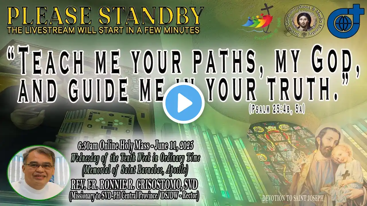 Live Now | Online Holy Mass - 6:30am, Thursday of the Eleventh Week in Ordinary Time, June 19, 2025. (Solemnity/ Memorial/ Feast/ Saint of the Day: Memorial of Saint Romuald, Abbot) This Holy Mass is celebrated via online and presided by the Rev. Fr. Louie Punzalan, SVD (Missionary to SVD-PH Central Province/ Alumni Affairs & External Relations) at the Diocesan Shrine of Jesus the Divine Word at Christ the King Mission Seminary, Quezon City. Reading: (2 Corinthians 11:1-11) Responsorial Psalm: (Psalm 111:1b-2, 3-4, 7-8) “Your works, O Lord, are justice and truth.” Alleluia: (Romans 8:15bc) “You have received a spirit of adoption as sons through which we cry: Abba! Father!” Gospel: (Matthew 6:7-15) * For Mass Intentions: www.bit.ly/shrinemassintentions For Special Masses: www.bit.ly/specialonlinemass For DSJDW Channel: https://www.messenger.com/channel/dio... * This online mass/ video is available for your online participation in the Eucharist. You are invited to share the video with your family and friends. (ctto: To All Pictures/ Music/ Videos used - No Copyright Infringement Intended.) * May GOD bless you and your family always and in all ways! #LIVEmass #SVD #DSJDW #CtKMS #SVDmission #DivineWord #ThinkSVD #PromotionToLOVEtheWORDofGOD #WitnessToTheWord #ThinkMission #commitedToHISmission #DSJDWholymassLIVE #RootedInTheWORD #SVDonlineMass “May the darkness of sin and the night of unbelief vanish before the light of the word and the spirit of grace. And may the Heart of Jesus live in every heart! Amen.” (St. Arnold Janssen, 1837-1909)