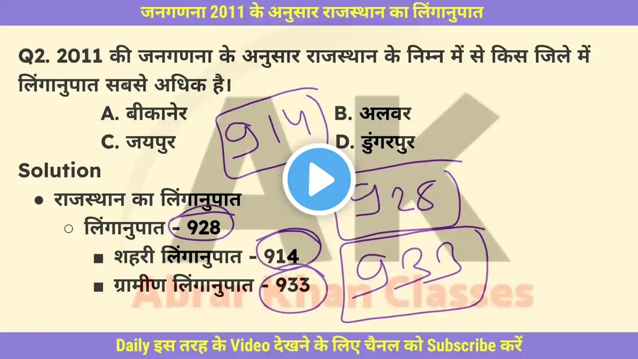 राजस्थान के उन 5 जिलों के बारे में जानिए जहाँ लिंगानुपात सबसे कम है। यह जानकारी RPSC, REET, VDO, Rajasthan Police, Patwari जैसे सभी प्रतियोगी परीक्षाओं के लिए बेहद महत्वपूर्ण है। वीडियो को Like, Share करें और Channel को Subscribe करें Rajasthan GK की और जानकारी के लिए। 💬 #RajasthanGK #RajasthanGeography #RPSCExam #REETExam #Rajasthan #Linganupat #rajasthangkshorts #CompetitiveExam #rajasthanfacts #shorts --- 🏷️ Tags: Rajasthan ke nyuntam linganupat wale jile, Rajasthan linganupat gk, Rajasthan gk questions, Rajasthan geography facts, Rajasthan census data, Rajasthan ke jile aur linganupat, RPSC 2nd grade Rajasthan GK, REET Rajasthan GK, VDO exam Rajasthan GK, rajasthan ki jansankhya, rajasthan important facts, rajasthan all exam gk, rajasthan current affairs, rajasthan short video, rajasthan #shorts