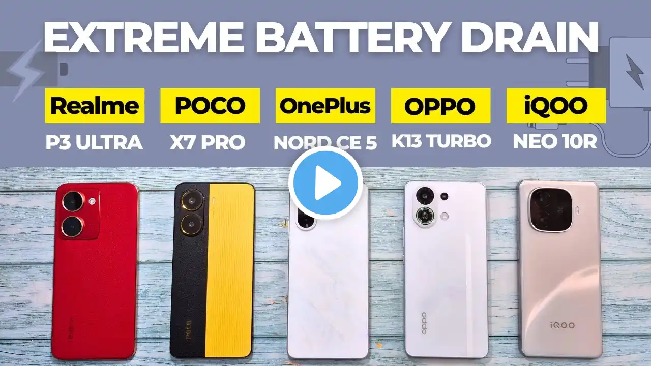 5G Battery Drain Test: Realme P3 Ultra vs OPPO K13 Turbo vs POCO X7 Pro vs NORD CE5 vs iQOO Neo 10r