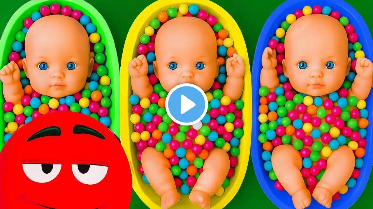 Full of 3 Rainbow BathTubs Candy with M&M's & Magic Slime Cutting Video