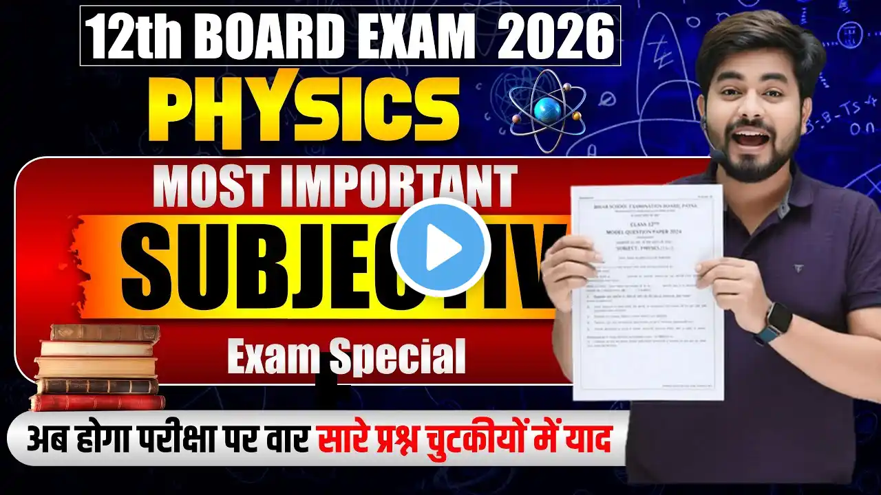 Class 12th Physics Vvi Subjective Question 2026 || Vvi Subjective Question2026 12th Physics इस वीडियो में हम लेकर आए हैं Class 12 Physics के सबसे महत्वपूर्ण Long Subjective Questions जो सीधे Bihar Board Exam 2026 में पूछे जा सकते हैं। यहाँ आपको मिलेगा – ✅ Previous Year + Expected Long Questions ✅ Exam Oriented Important Questions ✅ 100% Sure Shot Questions for Board 2026 ✅ Complete Revision Material for Physics Class 12 long question:#Long Question 100% grantee 2026: • Long Question 100% guarantee 2026 Mission 2026 objective playlist # • Mission 2026 Board exam Hindi:# • Hindi class 12 th complete crash course Long MVVI subjective # • Long Question 100% guarantee 2026 Chemistry MVVi subjective playlist # • V V IChemistry Board 2026 Telegram Channel https://t.me/Sumeetsirphysics Youtube channel Channel / @sumeetsirphysics828 WhatsApp channel https://whatsapp.com/channel/0029VatD... Proof Matching • 100% matching || guess by sumeetsirphysics... Instagram:-I'm on Instagram as @sumeet_ssp. Install the app to follow my photos and videos. https://www.instagram.com/sumeet_ssp?... 📌 यह वीडियो खासकर Bihar Board Class 12 Students के लिए है जो Board Exam 2026 में Physics में High Score करना चाहते हैं। 👉 वीडियो को अंत तक देखें और Notes ज़रूर बनाएं। physics class 12 important chapter up board 2025 class 12th physics important questions 2025 rbse physics ke important question 12th class 2025 physics class 12 important questions 2025 mp board physics ka paper physics class 12 important numerical 2025 up board vvi subjective question 2025 12th chemistry physics important questions class 12 mk sir up board wallah physics important questions class 12 2025 up board physics important questions class 12 numerical physics 12th class 2025 mp board wallah physics paper 12th class 2025 solutions Class 12 Physics 2026 Bihar Board Physics 2026 Physics VVI Questions 2026 Physics Long Subjective 2026 Bihar Board Exam 2026 Physics Physics Important Questions 2026 Physics Class 12 VVI 2026 Physics Board Exam Preparation 2026 Class 12 Physics Sure Shot Questions Bihar Board Physics Long Questions