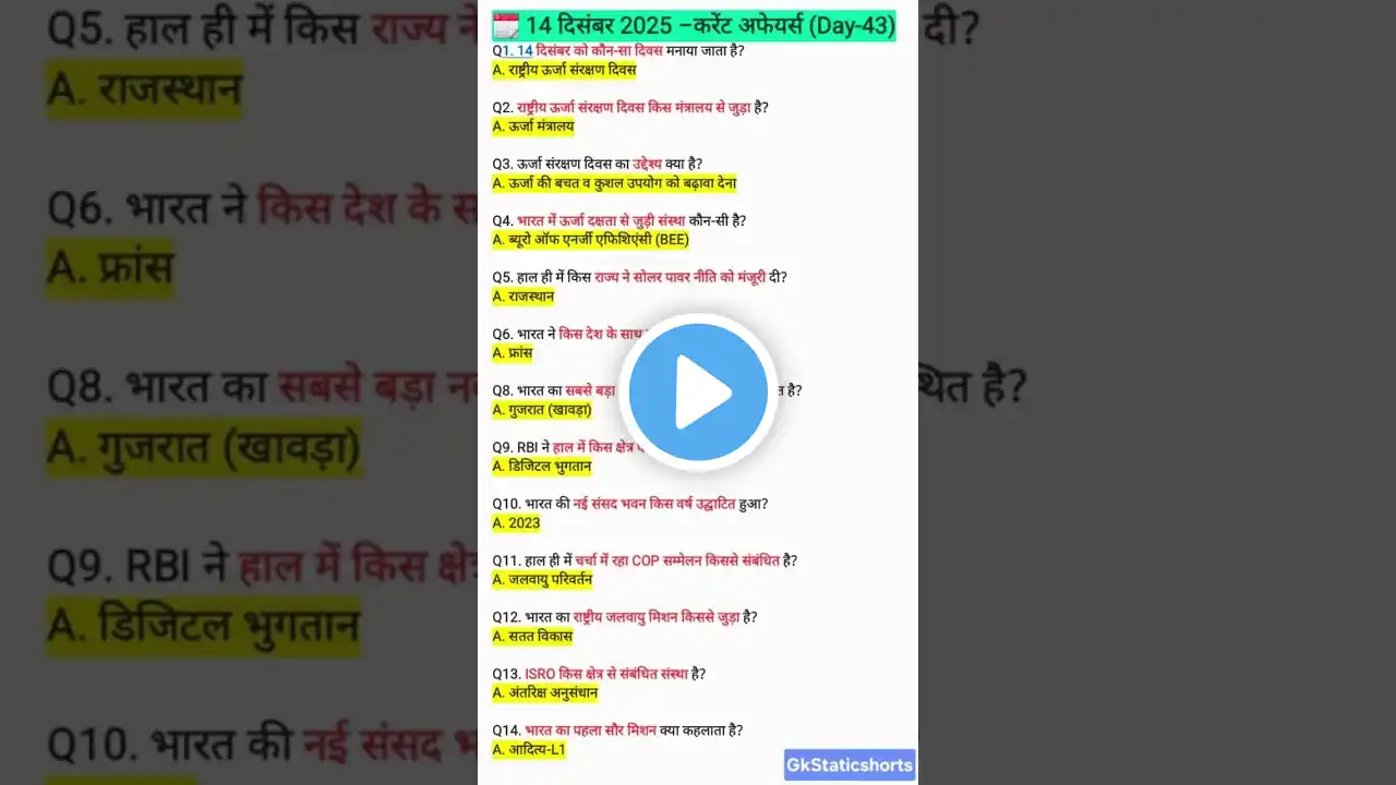 7 दिसम्बर करेंट अफेयर्स (2025)| most important questions #shorts #short #gk #gsgeneral #viral #gs #yt series 👉 daily current affair@5AM Major Current Affairs💫🌍 join telegram channel https://t.me/staticgkshorts ============================================ "शिक्षा🖋️ ही हमारी शान है, मुस्कुराहट😊 ही हमारी पहचान है। और भारत🇮🇳देश ही हमारी जान है।। इसी सोच के साथ #staticgkshorts1 चैनल आपके लिए हमेशा #latestnotification exam analysis previous year papers और सभी oneday #exam की क्लास उपलब्ध कराता है इससे जुड़कर आप सभी अपने सरकारी नौकरी के सपने को साकार कर सकते हैं धन्यवाद | ============================================ Today Cover topics in video 👉 1: 7 दिसम्बर करेंट अफेयर्स (2025)🔥 2: today current affairs 3: current affairs 2025 4: today current affairs by vijay sir 5: current affairs today 6: gk question 7: gk questions and answers 8: 2025 ka current affairs 9: most important GK question in Hindi 10: GK everyday current affairs in Hindi 11: Most important GK question 12: GK everyday current affairs 13: GK today current affairs current affairs 2025 in hindi, current affairs marathon 2025, current अफेयर्स, current affairs 2025january, current affairs rojgar Pariksha, current affairs updated, daily current affairs, today current affairs, today current updates, updates today, every day current affairs, current 2025, january month current affairs, top current affairs, today top current updates, current affairs for ro aro exam 2025 ,new appointment 2025,new scheme, Brand ambassador, new books launch, awards and honours, 7 December current affairs, 7 December current affairs, ============================================== Your Queries:– current affairs, current affairs 2025, current affairs today, current affairs by Static GK shorts, daily current affairs, daily current affairs in hindi, daily current affairs 2025, daily current affairs today, Static current affairs, rojgar with ankit current affairs, current affairs by krati mam, ntpc under graduate current affairs, GK history, Gk Questions, Current Affairs Today general knowledge 2025 2025 ka current affair ntpc important questions 2025 ntpc current affairs 2024 6 month current affairs 2025 latest gk and current affairs 2025 current affairs rrb ntpc current affairs march 2025 ntpc current affairs current affairs rrb ntpc current affairs 2025 ntpc current affairs 2025 current affairs for ntpc current gk railway current affairs ntpc 2025 ntpc current affair current affairs 2025 ntpc rrb ntpc current affairs rrb current affairs 2025 current affairs for rrb ntpc 2025 railway current affairs 2025 current affairs ntpc ntpc question paper 2025 current gk 2025 general awareness for rrb ntpc 2025 2025 ka current affairs group d classes 2025 current affairs for railway exam 2025 ntpc ka current affairs gk ntpc railway 2025 ntpc ke liye current affairs 6 month current affairs 2025 rrb group d current affairs 2025 railway ntpc classes ntpc ka current affair april 2025 current affairs current affair ntpc group d current affairs 2025 latest gk and current affairs 2025 rrb ntpc ntpc classes 2025 ntpc ke liye current affair 2025 current affairs for ntpc group d cut off 2023 rrb ntpc classes 2025 current affairs march 2025 current affairs today ntpc ntpc ka current affairs 2025 current affairs gk speedy current affairs 2025 haryana current affairs 2025 ============================================ Disclaimer : Copyright disclaimer under section 107 of the copyright act of 1976 allowance is made for fair use for purposes such a criticism comment news reporting teaching scholarship education and research fair use is a use permitted by copyright statute that might otherwise be infringing. ============================================== #shorts #ytshortsindia #sarkarivijay #ssc #ssccgl #sscmts #ssccpo #sscje #gktoday #gs #gkstudy #gkquestion #gkinhindi #knowledge #ctet #btet #stet #biharteacherexam #bpscteacher #uppolice #upsi #mpsi #biharconstable #bihardaroga #uppolicebharti #uppoliceconstable #railwayexam #railwaygk #railwaysgk #rrb #rrbalp2024 #rrbgroupd #rrbtechnician #rrbntpc #rrbje #currentaffairs2025 #current #currentupdate #everydaycurrentaffairs #dailycurrentaffairs #todaycurrentaffairs #currentaffairs2024 #dailytopcurrentaffairs #currentaffair #rrb #rrbalp2025 #rrbgroupd #rrbtechnician #rrbntpc #rrbje #currentaffairs2025 #current #currentupdate #everydaycurrentaffairs #dailycurrentaffairs #todaycurrentaffairs #currentaffairs2025 #dailytopcurrentaffairs #currentaffair#ssccgl #currentaffairs #sscchsl #gk #upsc @pathshalarailwayexams @RailwayTestbook @Learnwithaspirants1 @ROYALSTUDY1 @HARENDRAGSADDA @rakeshsays2.0 @AmanPrayasGkGs @SSCMTS247 @XmartStudy Subscribe to my channel 😊✨ Thank you for watching!!