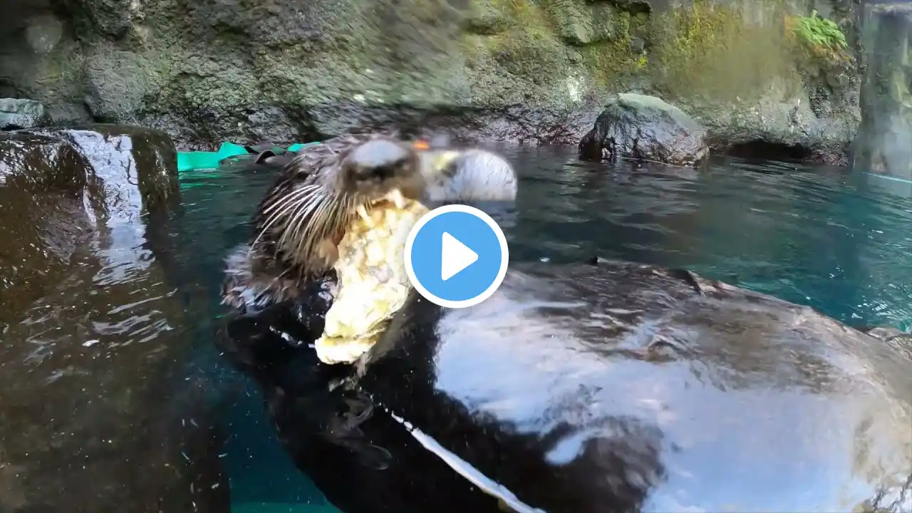 Uni took a crack at oyster shucking. Because their metabolism is 2-3 times the rate of other mammals their size, sea otters needs to eat about 25% of their weight every day.