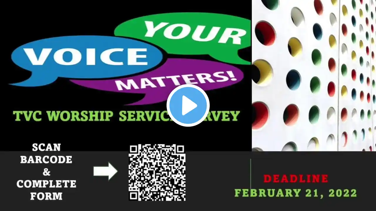 The Voice Church Virtual Worship Experience, Sunday February 6, 2022 https://www.surveymonkey.com/r/WGWJYFJ Fellowship with us LIVE every Saturday at 6:00 pm, Sunday at 7:00 am, 9:00 am & 6 pm EST on our website thevoicechurch.org & YouTube! Join our community through our social media platforms, we want to connect with YOU: @The Voice Church on Facebook @thevoicechurchmd on Instagram @VoiceChurchMD on Twitter Website: thevoicechurch.org Join us on our prayer call every Tuesday, Thursday & Saturday morning at 6:00AM EST! Dial in #: 716.427.1060 Access code: 681968 Playback #: 857.357.0208 Access code: 681968 To Honor God thru Giving with TVC, choose any one of our portals: TEXT: “MYVOICE” to (888) 364-GIVE (4483) WEBSITE: https://thevoicechurch.org - PAYPAL CashApp: $thevoicechurch GIVELIFY: Worship World Church US MAIL: PO Box 2623, Laurel, MD 20709 Thank you! #usingOURvoice #BishopBest