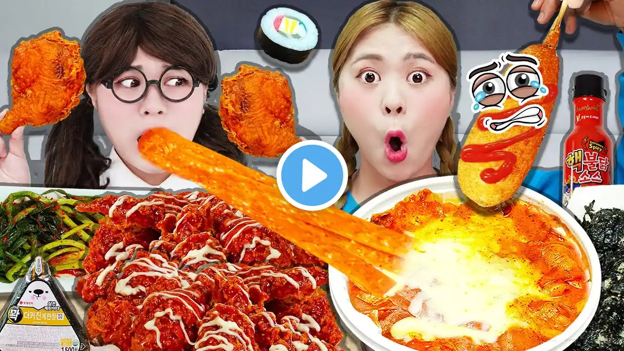 HiU's Honey Tteokbokki Mukbang! Rose Sauce Spicy Tteokbokki Chicken MUKBANG Fried Tteokbokki Rice...