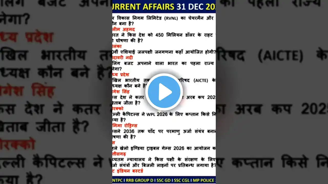 29 दिसंबर करेंट अफेयर्स डेली New सबसे पहले|MCQ डेली Most EXAM MCQ डेली करेंट अफेयर्स 2025|By AK SIr Current affairs 29 दिसंबर 2025 UP HOMEGUARD 2025 || UP HOMEGUARD GK GS CLASS 10|| MOST IMPORTANT QUESTION In this special UP Home Guard GK & GS Marathon Class Amit Sir covers the most important questions expected in the UP Home Guard exam. This session includes previous year-based MCQs high-scoring General Knowledge & General Science topics and complete exam-focused revision designed to help aspirants score maximum marks. Strengthen your UP Home Guard 2025 preparation with this powerful all-in-one GK-GS practice session. UP Home Guard GK Important Questions2025-26 UP Home Guard GS Expected MCQ UP HomeGuard Previous Year Exam-Based Topics Covered: UP Home Guard GK Important Questions UP Home Guard GS Expected MCQs UP HomeGuard Previous Year Exam-Based Questions Uttar Pradesh General Knowledge General Science Important Topics for UPHG Complete GK-GS Marathon for Home Guard High-Scoring Exam-Oriented Practice Your Queries: Up homeguard gk gs by Amit Sir UP Home Guard Previous Year Question Paper UP Home Guard GK GS Class 2025 Uttar Pradesh Home Guard Exam Important Questions UP GK GS Practice Set by Amit Sir Home Guard Bharti Preparation 2025 up home guard gk up home guard gk classes up home guard 2025 home guard gk home guard gk class up home guard preparation up home guard syllabus up home guard exam 2025 Most Exam Time Likes share subscribe up home guard exam 2025 up home guard general knowledge home guard exam preparation up home guard static gk up gk classes set 02 uttar pradesh gk home guard bharti 2025 up home guard online classes up home guard gk gs set 10 up home guard gk class gk for up home guard up home guard gk gs 2025 Current affairs 29 दिसंबर 2025 up home guard gk gs class gk gs for up home guard up home guard history class set 10 up home guard current affairs class up home guard static gk class up home guard gk class by vivek sir up home guard complete static gk class up home guard current affairs playlist class up home guard static gk playlist home guard class by exampur up home guard classes set 10 Current affairs 29 दिसंबर 2025 #uphomeguard2025 #uphomeguard2025 #uphomeguardgk #generalknowledgeuphomeguardstaticgk #uphomeguardcurrentaffairs #uphomeguardgkclass #uphomeguardpreparation #uphomeguardexam2025 #uphomeguardbharti #uphomeguardbharti2025 #uppolicehomeguard #uppolicehomeguardgk #gkquizhomeguardgk #staticgk #currentaffairs #currentaffairs2025 #Amit SIR By AK SIR #viveksir#Amit SIR practice set current affairs 29 दिसंबर 2025 #exampur #upsiupdate #gkquiz #gk #adda247uppoliceconstable #upsiform #gkgs #rwa #up #generalstudies