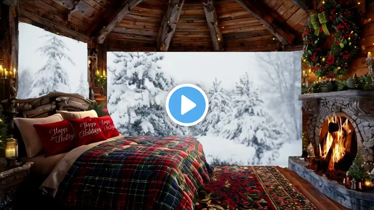 Cozy Winter Room | Fireplace Ambience with Snow and Howling Wind for Relaxation and Deep Sleep