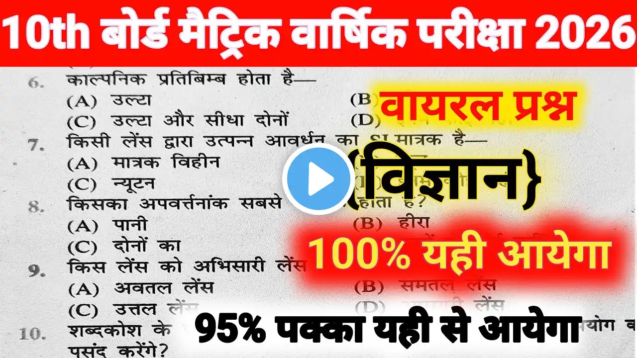 Top 50 Viral Questions 2026 | Board Exam 2026 Science | Class 10th Objective | By Pankaj Sir ๐ธ๐ ๐ ๐ ๐ ๐ ๐ ๐ ๐ ๐ ๐ ๐ ๐ ๐ ๐ ๐ ๐ ๐ ๐ ๐ ๐ธ Download App Pankaj Study Centre: - https://play.google.com/store/apps/de... Playlist:- ย ย ย โขย NCERTย Bookย Mathย classย 10thย ย To take notes on all subjects and join the WhatsApp group, call or WhatsApp the number given below. || ๐ 8581802929 ๐9334528717 ๐ธ๐ ๐ ๐ ๐ ๐ ๐ ๐ ๐ ๐ ๐ ๐ ๐ ๐ ๐ ๐ ๐ ๐ ๐ ๐ธ ๐ด๐For 11th and 12th preparation, be sure to subscribe to this channel too. || ๐ดChannel Link:- ย ย ย /ย @pankajstudycentreย ย ๐ด๐Join Facebook Page:- ย ย /ย 14yhskj2pb7ย ย ๐ด๐Follow this link to join my WhatsApp community: Join:- https://chat.whatsapp.com/HahmInJobRv... ๐ด๐Follow this link to join my Instagram: Join:- https://www.instagram.com/pankajstudy... ๐ธ๐๐๐๐๐๐๐๐๐๐๐๐๐๐๐๐๐๐๐ธ ๐ธ๐ ๐ ๐ ๐ ๐ ๐ ๐ ๐ ๐ ๐ ๐ ๐ ๐ ๐ ๐ ๐ ๐ ๐ธ Bihar Board & UP Board Matric Exam 2025 | How to prepare for Bihar Board & UP Board Matriculation | Matric Exam 2025 Bihar Board & UP Board ๐My dear brothers, sisters, and friends, Namaskar๐ Pankaj Study Center offers online tests and model sets for various subjects to help students prepare for exams. Here is a list of some key subjects: In addition, guidance is also provided for Class 12, covering exam preparation, time management, and study strategies. thank you 1. Board Exam 2026 Science 2. Science Most Impotent Question Board Exam 2026 3. Board Exam 2026 Science by pankaj sir 4. Science Most Impotent Question Board Exam 2026 pankaj sir 5. science most important question board exam 2026 science 6. science important questions class 10 2025 up board 7. science paper 10th class 2025 8. science mcq class 10 cbse board 2025 9. science mcq class 10 cbse board 2025 answer key 10. science mcq class 10 cbse board 2025 important questions 11. Class 10th Board Exam 12. Board Exam 2026 Science 13. Science Most Impotent Question 14. Science Viral Question 2026 15. Top 50 Viral Questions 2026 #Science_class_10_Science_live_test_bihar_board #class_10_Science_live_test_bihar_board #math_live_test_class_10 #live_test_Science #live_test_by_pankaj_sir #Science_class_10_bihar_board #science_class_10_bihar_board #Science_Most_Impotent_Question_Board_Exam_2026 #Board_Exam_2026_Science_pankaj_sir #pankajstudycentre #psc #pankajsir #mathbypankajsir