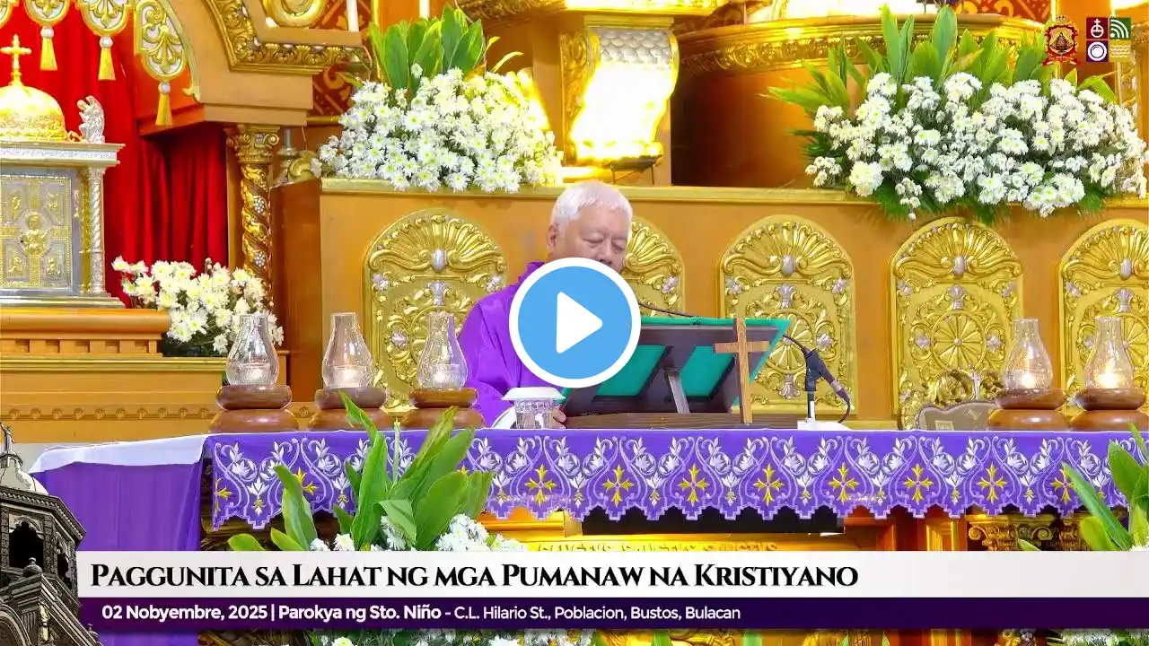 02 NOBYEMBRE 2025 | 8:00 NG UMAGA | BANAL NA MISA Paggunita sa Lahat ng mga Pumanaw na Kristiyano “Ako ang daan, ang katotohanan, at ang buhay. Walang makapupunta sa Ama kundi sa pamamagitan ko.” - Juan 14, 1-6 Halina at magsama-sama tayo bilang isang nagkakaisang sambayanan ng Diyos online sa ating Facebook page (www.facebook.com/SNPBustos1867) at YouTube channel ( / snpbustos).1 #StoNiñodeBustos #AngMuntingTinig #SNPBustos
