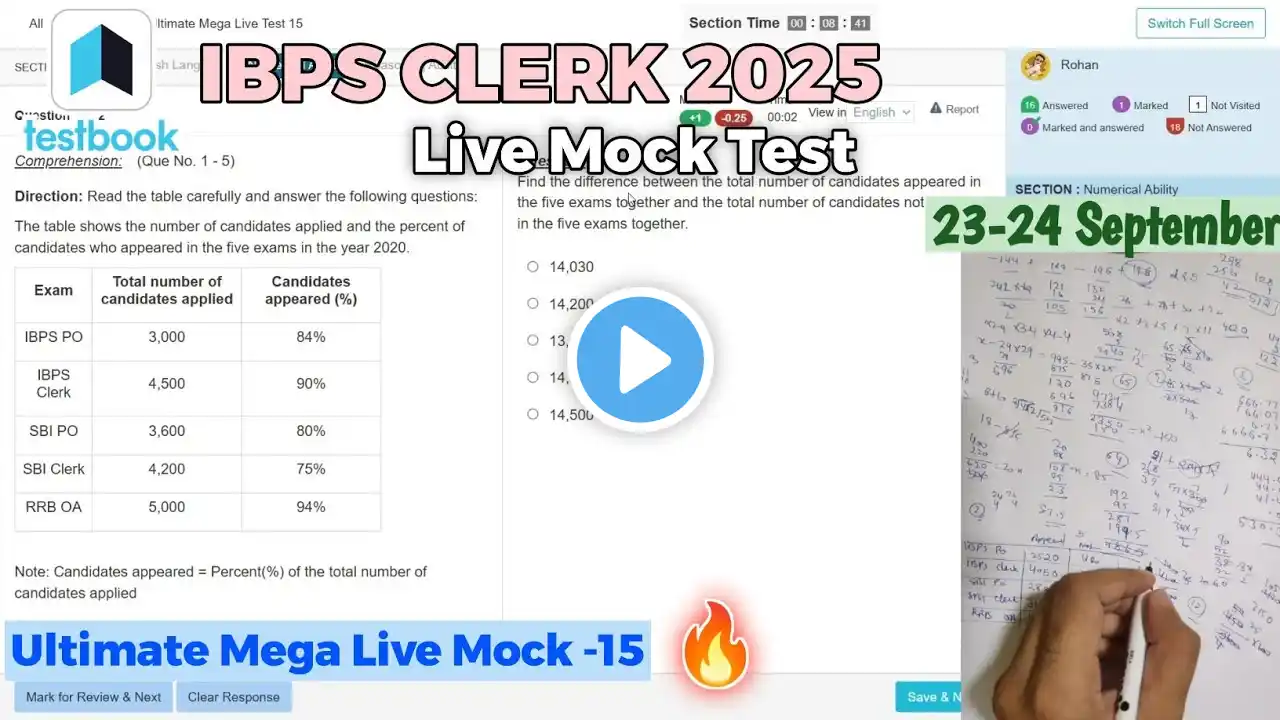 🎯Testbook IBPS Clerk Live Mock Test📚✍️ 23 Sep | Share Score📝👆 | How to Attempt Mock #ibps #ibpsclerk