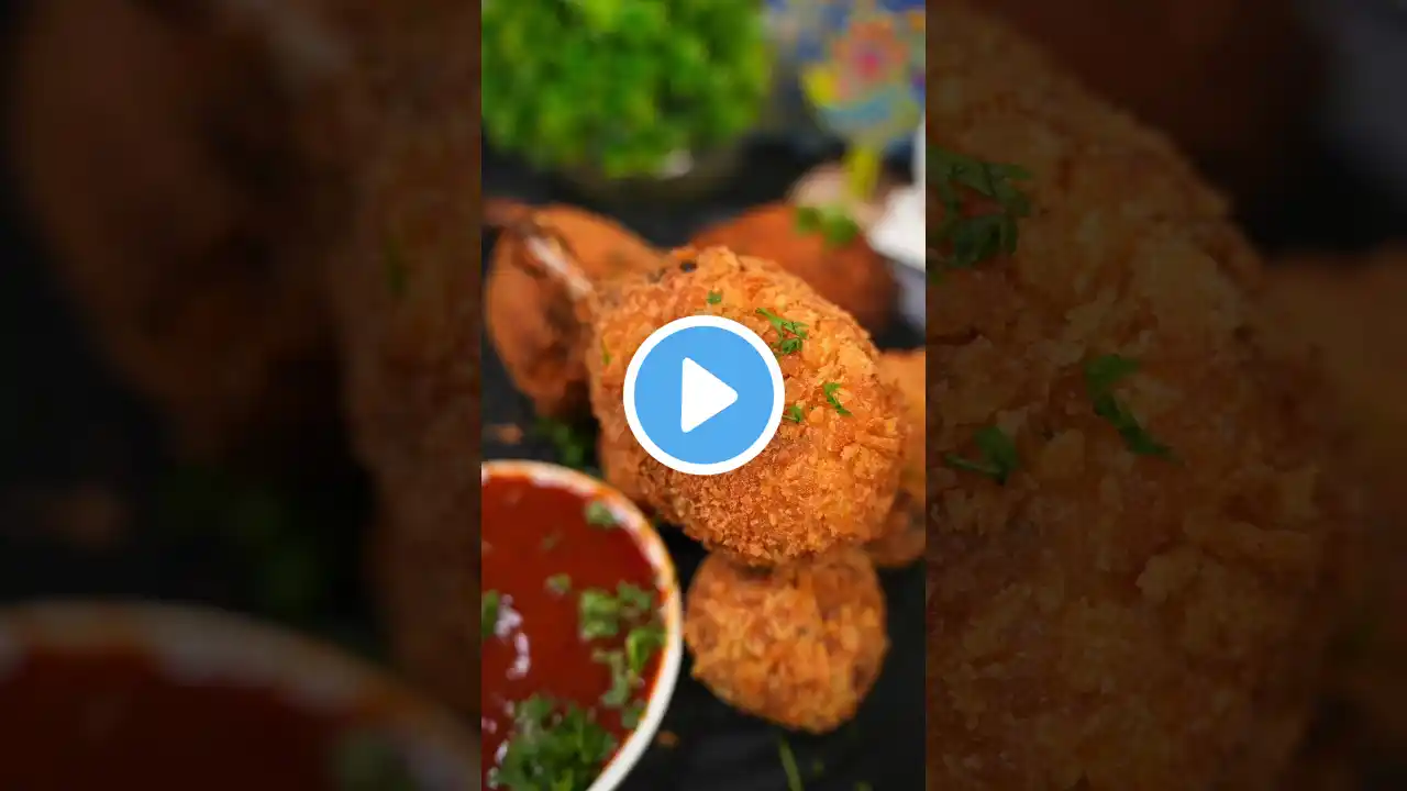 Ingredients: . Chicken Drumsticks (7-8 nos) . Boiled Potatoes (3-4 medium sized) . Coriander Leaves (chopped) [A Handful] . Garlic (Grated) [1 TBSP] . Ginger (Grated) [ 1 TBSP] . Cheese (3-4 TBSP) . Bread Crumbs (1/2 Cup) . Chilli Flakes (2 TBSP) . Oregano (1 TBSP) . Salt to taste . Egg wash and bread crumbs for coating . Deep Fry until the lollipops turn golden brown #shorts #youtubeshorts #ytshorts #shortsvideo #chicken #chickenlollipop #crispychicken #kfcchicken #chickenrecipe #chickenlegpiece #streetfoodindia #streetfood #asmr #satisfying #mukbang
