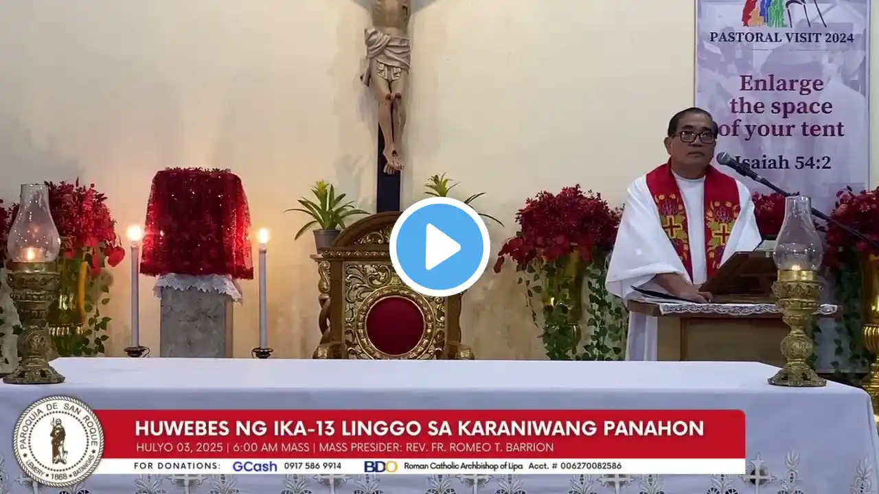 July 4, 2024 (Thursday) 9AM MASS Huwebes ng Ika-13 Linggo sa Karaniwang Panahon Tagapagdiwang: Rev. Fr. Ernesto Panelo FOR YOUR OFFERING: UNION BANK ACCOUNT NAME: OUR LADY OF MIRACULOUS MEDAL PESO SAVINGS ACCOUNT: 0022-2000-7346 GCASH: QR CODE WILL BE POSTED DURING THE OFFERTORY ON OUR FACEBOOK PAGE Maria, Mahal na Ina ng Awa Mission Station CONTACT NUMBER: 0936-7643308 BPI BANK ACCOUNT: 3853-1379-86 "O Mary, conceived without sin, -pray for us who have recourse to thee," #OurLadyofMiraculousMedal #PrayforUs #OnlineMass #HolyMass #MaryMotherofMercy #PrayForUs #MariaMahalNaInaNgAwa #IpanalanginMoKami #DearMotherOfMercy #PrayForUs