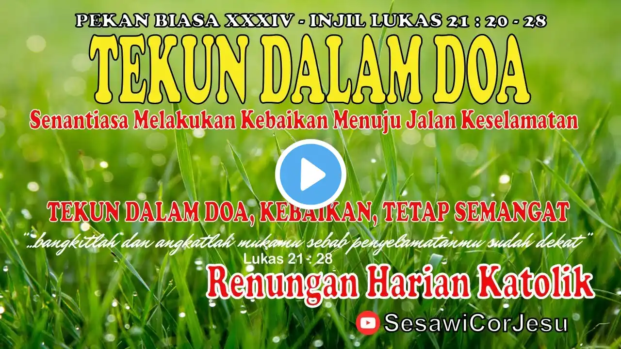 #renungankristen #renunganharian #renunganpagi #apaitukasitu JAGA HATI JAGA PERBUATAN INJIL LUKAS 21 : 34 - 36 PEKAN BIASA XXXIV ALBUM RENUNGAN HARIAN | RENUNGAN HARIAN KATOLIK HARI INI | RENUNGAN PAGI KATOLIK CHANEL INI BERISI : OASE ROHANI KATOLIK HARI INI RENUNGAN PAGI KATOLIK HARI INI RENUNGAN HARIAN KATOLIK HARI INI APA ITU KASIH RENUNGAN MALAM KATOLIK HARI INI RENUNGAN HARI INI SUARA INJIL RENUNGAN HARIAN KATOLIK HARI INI RENUNGAN FIRMAN TUHAN RENUNGAN MALAM KRISTEN RENUNGAN KATKIT KATOLIK KATKIT KATEKESE SEDIKIT KAMU ORANG BERDOSA? SUARA INJIL DOA PAGI KATOLIK HARI INI DOA PENUH KUASA AUDIO : NEW VIBES - RELAXING MUSIC • Relaxing Classical Music | NO COPYRIGHT | ... SUMBER RENUNGAN DAN INSPIRASI : ZIARAH BATIN Semoga Sobat Kawula Muda Cor Iesu semuanya selalu bahagia ya..amien selalu Chanel ini berisi tentang : oase rohani katolik hari ini oase katolik hari ini renungan malam katolik hari ini renungan malam katolik sebelum tidur hari ini Katekese Sedikit Romo Bayu pentakosta katekese kristen katolik renungan harian katolik tanggal renungan harian renungan pagi katolik renungan pagi katolik hari ini renungan harian katolik hari ini gereja mbk gereja katolik katolik indonesia doa renungan harian katolik renungan katolik hari ini tuhan andalan hidup sesawicoriesu iesu cor sesawi renungan hari ini kristen protestan suara injil renungan malam kristen renungan harian kristen hari ini renungan hari ini katolik 2021 spirit jangan lemes jadi garam dan terang dunia terjadilah atas kehendak bapa