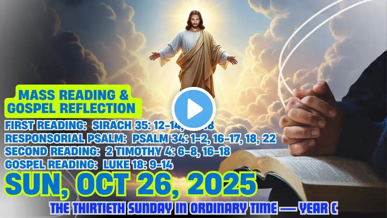 #TodayGospelReading #GospelReadingforToday #HolyMassReadings #HolyMassGospel Today's Catholic Mass Readings and Gospel Reflection - Sunday, October 26, 2025 First Reading: Sirach 35: 12-14, 16-18 Responsorial Psalm: Psalm 34: 1-2, 16-17, 18, 22 Second Reading: 2 Timothy 4: 6-8, 16-18 Gospel Reading: Luke 18: 9-14 Thirtieth Sunday in Ordinary Time ************** Reflection: Copyright © 2023 My Catholic Life! Inc. All rights reserved. Used with permission. www.mycatholic.life ************** Disclaimer: This video may contain copyrighted material used under "Fair Use" for religious, educational, and inspirational purposes. We do not claim ownership of the copyrighted content. If you believe any material infringes on your copyright, please contact us at [email protected] and we will address it promptly ************** Today's holy mass reading, Today's catholic mass reading, Daily mass reading 2024, Today's Gospel Reading, Today's mass reading catholic,mass reading english, Gospel Reading, Responsorial Psalm, Mass, Catholic, Bible, Gospel, Word of God, Daily mass reading, The word today, Mass reading for today, Catholic mass reading, Catholic mass today, Catholic mass, Daily mass reading and reflection, Catholic reading today, Catholic daily mass reading, Today's Bible Verse