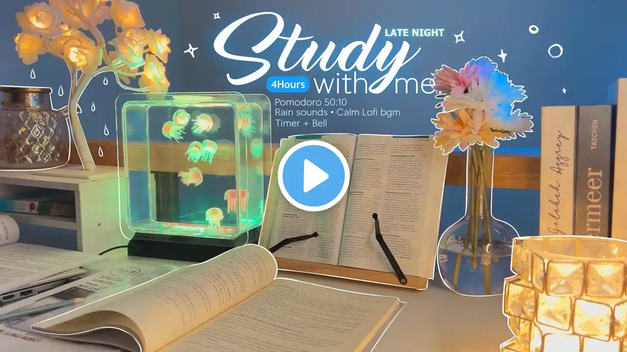 4-Hours Study With Me at Night 📚 | Pomodoro Timer 50-10 | Relaxing Rain Sound & Lofi Music