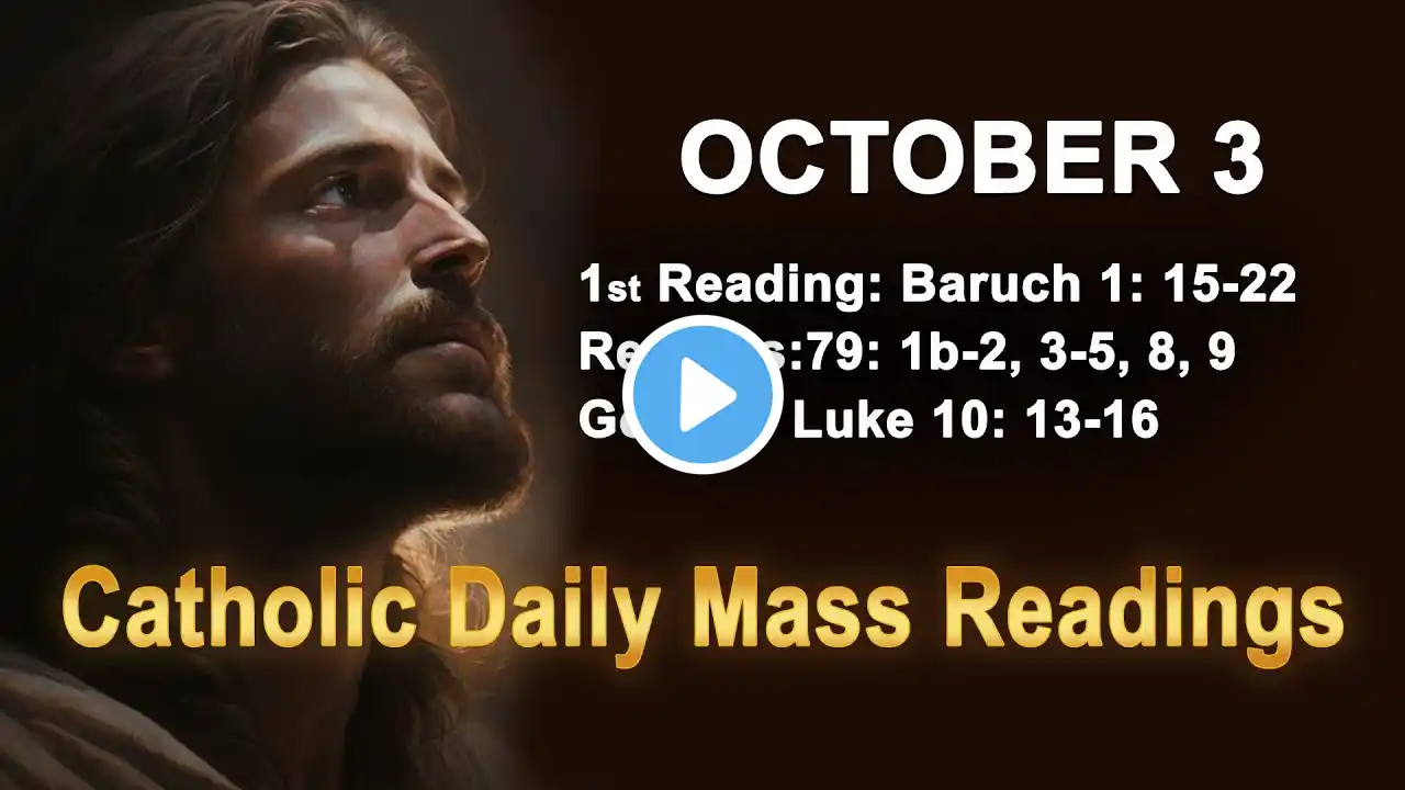 #RepentAndReturn, #MercyOfGod, #CatholicReflections, #DailyMassReadings, #TrustInChrist Today's Catholic Mass Readings & Gospel Reflection – Friday, October 3, 2025 Reading 1: Baruch 1:15–22 Resp: Psalm 79:1b–2, 3–5, 8, 9 Gospel: Luke 10:13–16 Friday of the Twenty-sixth Week in Ordinary Time Lectionary: 459 My dear brothers and sisters, today’s readings remind us that God is merciful, but He also calls us to take responsibility for our response to His Word. Like the exiles in Baruch, we must acknowledge our sins and seek forgiveness. Like the psalmist, we must cry out for mercy in faith. And like those who heard Jesus, we must never delay conversion, for rejecting God’s call closes the door to His blessings. Let us walk forward humbly, with contrite hearts and renewed trust in His mercy. Please join us again tomorrow as we continue our journey through Scripture. And if you have prayer requests, we invite you to share them with us so that our community can intercede together, especially for those most in need of God’s healing love. May the Lord bless you and keep you steadfast in His mercy until we meet again. This Gospel reflection is 100% original—written, produced, and owned by The Word Today TV. It includes on-screen text and spoken audio to serve those with visual or hearing impairments. Our mission is to share God's Word in an accessible, devotional, and faithfully Catholic way. Keywords: October 3 2025 Catholic Mass readings, Friday of the Twenty-sixth Week in Ordinary Time, Lectionary 459, Baruch 1:15–22 reflection, Psalm 79 daily prayer, Luke 10:13–16 Gospel reflection, Catholic homily repentance and mercy, daily Catholic reflections, Catholic Public Domain Version scripture, Catholic teaching on conversion, urgency of repentance, God’s justice and mercy, Catholic liturgy reflection, Word Today TV original Gospel reflection, listening to God’s Word faithfully === Disclaimer: This video contains original reflections and commentary on the Catholic daily readings, produced by The Word Today TV. It may also include copyrighted material used under the principles of fair use for religious, educational, and inspirational purposes. We do not claim ownership of any copyrighted content. If you are the copyright owner and believe your material has been used improperly, please contact us at [email protected], and we will respond promptly to resolve the issue. Don't forget to Like, Share, and Subscribe to support our mission of spreading the Word of God daily.
