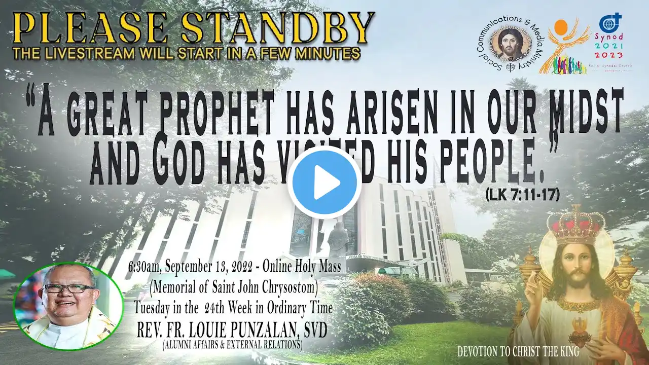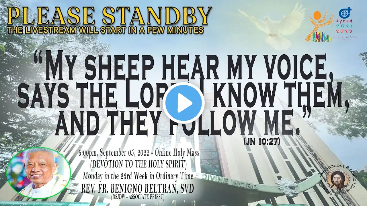 #SVDat147Anniversary Live Now | Online Holy Mass & Devotion to the Holy Spirit - 6:00pm, Monday in the Twenty Fourth Week in Ordinary Time, September 12, 2022. (Memorial of the Holy Name of Mary) This Holy Mass is celebrated via online and presided by the Rev. Fr. Ronald Rey Espartinez, SVD (DSJDW - Vice Rector) at the Diocesan Shrine of Jesus the Divine Word at Christ the King Mission Seminary, Quezon City. Reading: 1 COR 11:17-26, 33 Responsorial Psalm: PS 40:7-8A, 8B-9, 10, 17 (1 COR 11:26B) “Proclaim the death of the Lord until he comes again.” Alleluia: JN 3:16 “God so loved the world that he gave his only-begotten Son, so that everyone who believes in him might have eternal life.” Gospel: LK 7:1-10 * For Mass Intentions: www.bit.ly/shrineintentions For Special Masses: www.bit.ly/specialonlinemass * This online mass/ video is available for your online participation in the Eucharist. You are invited to share the video with your family and friends. Watch/ Like/ Follow/ Share/ Subscribe to this channel for alerts and notifications on Daily Masses, Liturgical Services and other videos. (ctto: To All Pictures/ Music/ Videos used - No Copyright Infringement Intended.) * May GOD bless you and your family always and in all ways! #LIVEmass #SVD #DSJDW #CtKMS #SVDmission #DivineWord #ThinkSVD #PromotionToLOVEtheWORDofGOD #WitnessToTheWord #ThinkMission #commitedToHISmission #DSJDWholymassLIVE #RootedInTheWORD #SVDonlineMass “May the darkness of sin and the night of unbelief vanish before the light of the word and the spirit of grace. And may the Heart of Jesus live in every heart! Amen.” (St. Arnold Janssen, 1837-1909) #NEWnormalAtTheShrine