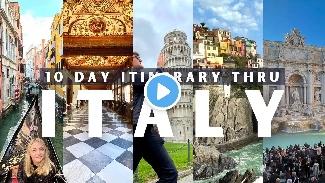 If you are planning a trip to Italy and aren't sure where to start, this is the itinerary you are going to want to follow! In this video, I share the ultimate 10 days in Italy itinerary designed for first-time visitors. This Italy travel guide holds your hand throughout the planning process. I will walk you through iconic destinations like Rome, Florence, Cinque Terre, and Venice, ensuring you experience the best of Italian history, culture, and cuisine. You will quickly see that planning a trip to Italy for the first time is easy with my well-rounded Italy vacation guide. This itinerary has it all—from ancient ruins and Renaissance art to breathtaking coastal views, romantic canals, and even some cool hidden gems. We will go through each day of the trip on your Italy itinerary, city-by-city, with all the tips, tricks, and insider advice that you need. I even cover train travel logistics to help make your journey stress-free and unforgettable! By the end of this video, you will feel totally confident and excited to book the Italy trip you have always wanted. If you have been dreaming of a memorable 10 days in Italy, this itinerary is the perfect way to make the most of your adventure. Table of contents: 0:00 - Intro 0:45 - Rome Day 1 1:58 - Rome Day 2 3:37 - Rome Day 3 4:49 - Florence Day 4 6:03 - Florence Day 5 7:18 - Florence Day 6 8:14 - Cinque Terre Day 7 9:43 - Cinque Terre Day 8 10:40 - Venice Day 9 12:09 - Venice Day 10 13:24 - Outro #italytravel #italyitinerary #italy #veniceitaly #tuscany #travelinspiration #rome #travelguide #italyguide #italyvacation