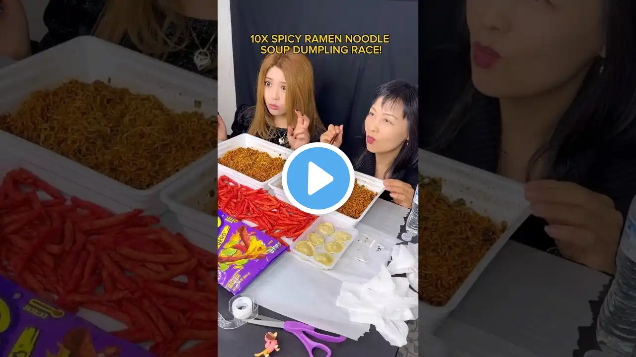 10x spicy ramen and soup dumplings race! #food #eating #challenge