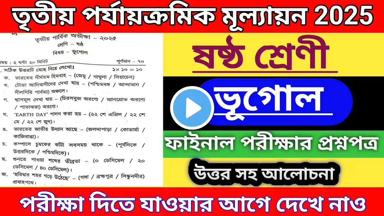 class 6 geography 3rd unit test question paper2025/class 6 final exam geography suggestion/bhugol 3