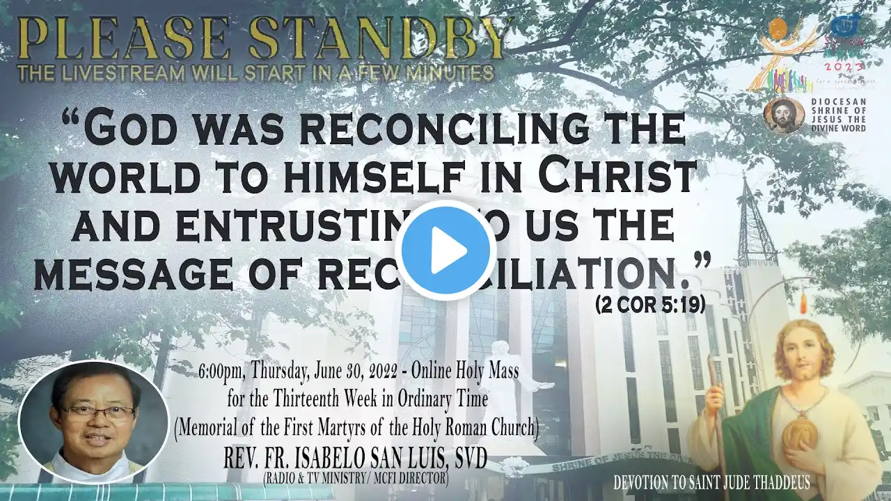 Live Now | Online Holy Mass & Devotion to the Holy Spirit - 6:00pm, Monday in the Seventh Week of Easter, May 30, 2022. This Holy Mass is celebrated via online and presided by the Rev. Fr. Andrew Amanor, SVD (CtKMS - Asst. Head Prefect) at the Diocesan Shrine of Jesus the Divine Word at Christ the King Mission Seminary, Quezon City. Reading: ACTS 19:1-8 Responsorial Psalm: PS 68:2-3AB, 4-5ACD, 6-7AB “Sing to God, O kingdoms of the earth.” Alleluia: COL 3:1 “If then you were raised with Christ, seek what is above, where Christ is seated at the right hand of God.” Gospel: JN 16:29-33 * For Mass Intentions: www.bit.ly/shrineintentions For Special Masses: www.bit.ly/specialonlinemass * This online mass/ video is available for your online participation in the Eucharist. You are invited to share the video with your family and friends. Watch/ Like/ Follow/ Share/ Subscribe to this channel for alerts and notifications on Daily Masses, Liturgical Services and other videos. (ctto: To All Pictures/ Music/ Videos used - No Copyright Infringement Intended.) * May GOD bless you and your family always and in all ways! #LIVEmass #SVD #DSJDW #CtKMS #SVDmission #DivineWord #ThinkSVD #PromotionToLOVEtheWORDofGOD #WitnessToTheWord #ThinkMission #commitedToHISmission #DSJDWholymassLIVE #RootedInTheWORD #SVDonlineMass “May the darkness of sin and the night of unbelief vanish before the light of the word and the spirit of grace. And may the Heart of Jesus live in every heart! Amen.” (St. Arnold Janssen, 1837-1909) #NEWnormalAtTheShrine