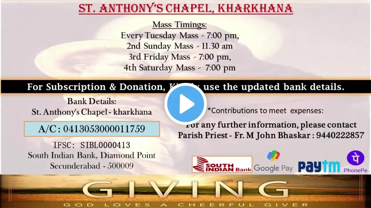24th September 2022 Holy Eucharistic Celebration 06:30am IST St Anthony's Church Mudfort