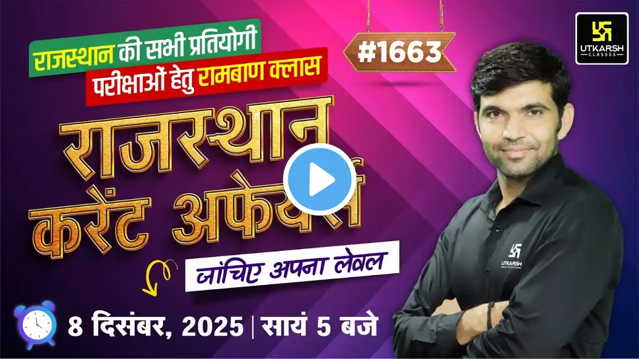 Rajasthan Current Affairs 2025 (1648) | Current Affairs Today | Narendra Sir “संघर्ष जितना बड़ा होगा जीत उतनी ही शानदार होगी।” और इसी जुनून के साथ राजस्थान की आगामी सभी प्रतियोगी परीक्षाओं की तैयारी को और मजबूत बनाने के लिए #Rajasthan_Current_Affairs" की #Daily_Class ली जा रही है। इस #क्लास में आप नियमित रूप से राजस्थान से संबंधित वह जानकारियाँ प्राप्त कर सकते है जो आपकी प्रतियोगी परीक्षा के दृष्टिकोण से बहुत उपयोगी होती है । इस #live_session के #Feature इस प्रकार है - 🌟 समसामयिकी घटनाएं एवं महत्त्वपूर्ण तथ्य 🌟 राजनीतिक और आर्थिक घटनाक्रम 🌟चर्चित व्यक्ति एवं स्थान 🌟शिक्षा, साहित्य, आर्थिक योजनाएं और समाज कल्याण कार्यक्रम 🌟खेल व पुरस्कार आदि ▬▬▬▬▬▬▬▬▬▬▬▬▬▬▬ Enroll Now 📢 Driver - https://utkarshnew.page.link/pNCnLJLh... 📢 4th Grade - https://utkarshnew.page.link/Ebj6khgb... 📢 Jail Prahari - https://utkarshnew.page.link/HoT65AGc... 📢 VDO - https://utkarshnew.page.link/kXYxbCpz... 📢 Patwar - https://utkarshnew.page.link/kqkYZrP6... ▬▬▬▬▬▬▬▬▬▬▬▬▬▬▬ 📢 Most Important Playlist 👇 🟢Playlist Of Rajasthan Jila Darshan By Narendra Sir 📌 • Rajasthan Jila Darshan By Narendra Sir || ... ▬▬▬▬▬▬▬▬▬▬▬▬▬▬▬ 📲 Download Our App👇 :- https://utkarshclasses.onelink.me/baP... 🌍Visit our website:- https://utkarsh.com/ 👨🏻🎓 Student Support:- [email protected] 📞Helpline No.:- 9116691119 ▬▬▬▬▬▬▬▬▬▬▬▬▬▬▬ ✤ Subscribe to Our Other Channels👇 :- ➤ https://linktr.ee/utkarshclassesyoutube ▬▬▬▬▬▬▬▬▬▬▬▬▬▬▬ ✦ Join Our Telegram Channels👇 :- ☞ Utkarsh Rajasthan Exams - https://t.me/UtkarshRajasthanExams ☞ Rajasthan Current Affairs By Utkarsh Classes - https://t.me/RajCurrentAffairsByUtkarsh ➤Our Other Telegram Channels - https://linktr.ee/UtkarshClassesTelegram ▬▬▬▬▬▬▬▬▬▬▬▬▬▬▬ ✦ Join Our WhatsApp Channel👇 :- ➤Utkarsh Rajasthan Exams - https://whatsapp.com/channel/0029Vaw5... ▬▬▬▬▬▬▬▬▬▬▬▬▬▬▬ #utkarshrajasthanexams #narendrasir #narendrasirstaticgk #rajasthancurrentaffairs #rajasthancurrentaffaitsrevision #rajasthangk #rajasthanexams #rajasthancurrentaffairs2025 #currentaffairs #currentaffairs #rajasthancurrentaffairsbynarendrasir