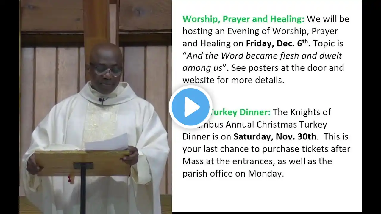Sunday Mass - Solemnity of Christ the King [34th & Final Sunday in Ordinary Time] (November 24, 2024) How worthy is the Lamb who was slain, to receive power and divinity, and wisdom and strength and honor. To him belong glory and power for ever and ever. Readings of the Day: https://bible.usccb.org/bible/readings/112... FIRST READING: Daniel 7:13-14 RESPONSORIAL PSALM: Psalm 93:1, 1-2, 5 SECOND READING: Revelation 1:5-8 GOSPEL ACCLAMATION: Mark 11:9, 10 GOSPEL: John 18:33b-37 The Lord sits as King for ever. The Lord will bless his people with peace. Our Parish Weekly Bulletin: https://parishesonline.com/organization/sa... Happy Birthday & Anniversary, To all who celebrated in the month of November, Blessings to you all!