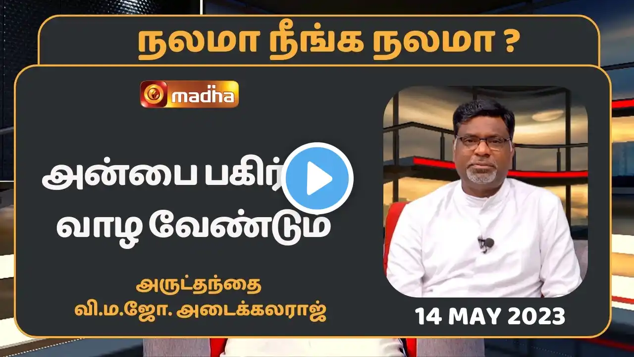 பேறுபெற்றவர்களுக்கு துணையாக நிற்க வேண்டும் !!! புதிய தொழில் நுட்பத்தில் மற்றுமொரு புதிய நிகழ்ச்சி ஊடக வழி உங்கள் இல்லம் நோக்கி நலமா நீங்க நலமா... Check us on: http://www.madhatv.in/ Subscribe us on : / madhatvchannel Follow us on : Facebook : / madhatv Instagram : / madhatv Join us on : Whats App : https://chat.whatsapp.com/GE4tBpsVnXZ #MadhaTV #Nalama_Neenga_Nalama #FrAdaikalam #videocall #letsgreet