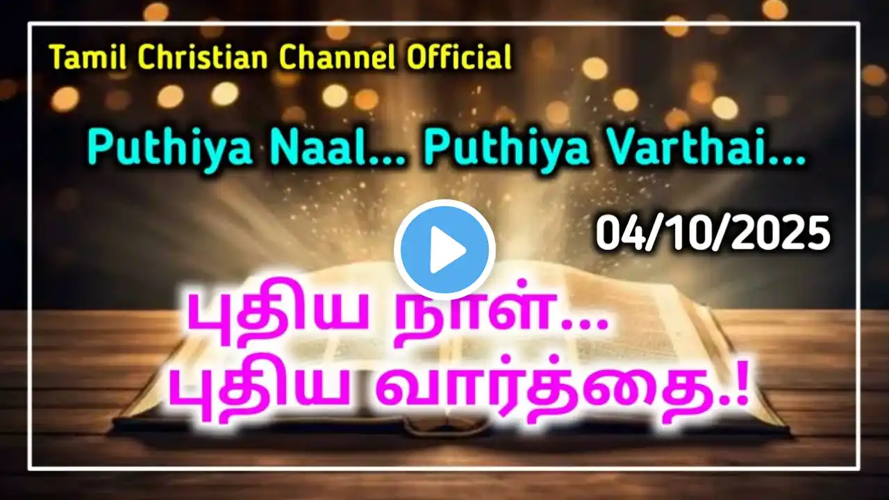 புதிய நாள் புதிய வார்த்தை | 11/10/2025 | Tamil Christian Message | Puthiya Naal Puthiya Vaarthai கர்த்தராகிய இயேசு கிறிஸ்துவின் நாமத்தில் அன்பின் வாழ்த்துக்கள்! இந்த 'புதிய நாள் புதிய வார்த்தை' நிகழ்ச்சியில், இன்று நாம் முடிவுப்பரியந்தம் நிலைத்திரு என்ற தலைப்பைப் பற்றி தியானிக்கப் போகிறோம். இந்த தேவ செய்தி (Deva Seithi) உங்கள் ஆவிக்குரிய வாழ்க்கைக்கு ஒரு பெரிய ஆசீர்வாதமாக (Aasirvatham) இருக்கும். In today's 'Puthiya Naal Puthiya Varthai' daily devotional, we explore the theme of Wait till end. This powerful Tamil Christian message is based on the Bible verse . Listen to this daily manna (தினசரி மன்னா) for spiritual encouragement and strength for your new day. இந்த தினசரி தியானம் (Dhinisari Dhiyanam) உங்களுக்கு பிரயோஜனமாக இருந்தால், இதை உங்கள் நண்பர்கள் மற்றும் குடும்பத்தினருடன் பகிர்ந்து கொள்ளவும். எங்கள் "Tamil Christian Channel Official" சேனலுக்கு Subscribe செய்யவும். #TamilChristianMessage #PuthiyaNaalPuthiyaVarthai #DailyDevotionalTamil #todayspromiseword புதிய நாள் புதிய வார்த்தை (Puthiya Naal Puthiya Varthai) இன்றைய தேவ செய்தி (Indraya Deva Seithi) இன்றைய வாக்குத்தத்தம் (Indraya Vaakuthatham) தினசரி தியானம் (Dhinisari Dhiyanam) காலை தியானம் (Kaalai Dhiyanam) தேவ வார்த்தை (Deva Varthai) ஆசீர்வாதம் (Aasirvatham) ஜெபம் (Jebam) Tamil Christian Message Today Daily Manna in Tamil Word of God for Today in Tamil Spiritual Encouragement Tamil Tamil Bible Study