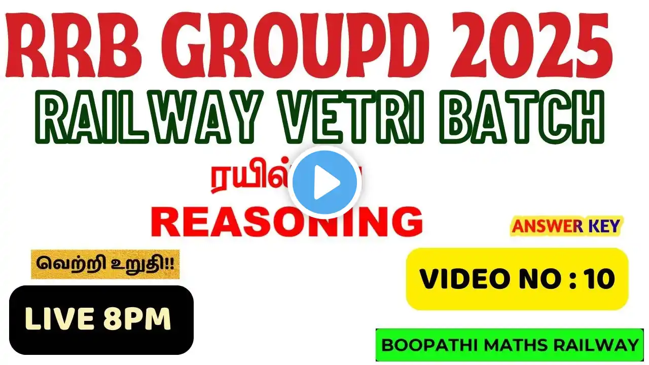 RRB Group D Reasoning Class 2025 | Group D Reasoning Practice Set 49 | Group D Reasoning MCQs | Reasoning by Shobit Sir Boost your RRB Group D preparation with this comprehensive Reasoning session by Shobit Sir! In Practice Set 49, we solve important MCQs that will help you strengthen your reasoning skills, improve speed, and increase accuracy for the upcoming RRB Group D Exam 2025. ✅ What you’ll get in this video: Step-by-step solutions for tricky reasoning questions Shortcut methods to solve problems faster Tips and tricks specifically for RRB Group D exam Concept clarity for all types of reasoning topics Coding-Decoding Series & Pattern Blood Relations Direction & Distance Syllogism & Logical Reasoning Puzzle Questions RRB Group D aspirants 2025 Students aiming to improve reasoning skills Anyone preparing for competitive exams with reasoning sections Don’t forget to like, share, and subscribe for more RRB Group D Reasoning practice sets and strategies! #RRBGroupD2025 #ReasoningByShobitSir #GroupDReasoning #RRBGroupDPractice #ReasoningMCQs #RRBPreparation ♀️रोजगार विद अंकित 𝐜𝐡𝐚𝐧𝐧𝐞𝐥 की किताब को ऑर्डर करने के लिए 𝐜𝐥𝐢𝐜𝐤 𝐡𝐞𝐫𝐞 👉 https://rojgar.click/uiaVA ♀️प्यारे साथियों आपका स्वागत है 𝐑𝐨𝐣𝐠𝐚𝐫 𝐰𝐢𝐭𝐡 𝐀𝐧𝐤𝐢𝐭 परिवार में 𝐚𝐩𝐩𝐥𝐢𝐜𝐚𝐭𝐢𝐨𝐧 डाउनलोड करने के लिए क्लिक करें 𝐃𝐨𝐰𝐧𝐥𝐨𝐚𝐝 𝐧𝐨𝐰 👉 https://rojgar.click/aBgMM ♀️हमारे 𝐖𝐡𝐚𝐭𝐬𝐀𝐩𝐩 चैनल को जॉइन करें 👉 https://rojgar.click/DYITX ➪➫➬➪➫➬➪➫➬➪➫➬➪➫➬➪➫➬➪➫➬ ♎ 𝐒𝐮𝐛𝐬𝐜𝐫𝐢𝐛𝐞 𝐨𝐮𝐫 𝐨𝐭𝐡𝐞𝐫 𝐜𝐡𝐚𝐧𝐧𝐞𝐥𝐬 :- ◈ 𝐓𝐞𝐚𝐜𝐡𝐢𝐧𝐠 𝐛𝐲 𝐑𝐨𝐣𝐠𝐚𝐫 𝐰𝐢𝐭𝐡 𝐀𝐧𝐤𝐢𝐭 :- https://rojgar.click/KbqSR ◈ 𝐑𝐨𝐣𝐠𝐚𝐫 𝐰𝐢𝐭𝐡 𝐀𝐧𝐤𝐢𝐭 𝐝𝐞𝐟𝐞𝐧𝐜𝐞 :- https://rojgar.click/Bjrzg ◈ 𝐁𝐚𝐧𝐤𝐢𝐧𝐠 𝐁𝐲 𝐑𝐨𝐣𝐠𝐚𝐫 𝐰𝐢𝐭𝐡 𝐀𝐧𝐤𝐢𝐭 :- https://rojgar.click/HGWXc ◈ 𝐑𝐖𝐀 𝐂𝐢𝐯𝐢𝐥 𝐒𝐞𝐫𝐯𝐢𝐜𝐞𝐬 :- https://rojgar.click/CeIgd ◈ 𝐑𝐖𝐀 𝐓𝐮𝐭𝐢𝐨𝐧 𝐂𝐥𝐚𝐬𝐬𝐞𝐬 :- https://rojgar.click/eFfXO ◈ 𝐅𝐀𝐂𝐄𝐁𝐎𝐎𝐊 :- https://rojgar.click/gnBmi ◈ 𝐈𝐍𝐒𝐓𝐀𝐆𝐑𝐀𝐌 :- https://rojgar.click/IqgJb ◈ 𝐓𝐰𝐢𝐭𝐭𝐞𝐫 (𝐗) :- https://rojgar.click/gBBcZ ◈ 𝐑𝐎𝐉𝐆𝐀𝐑 𝐖𝐈𝐓𝐇 𝐀𝐍𝐊𝐈𝐓🥇 :- https://rojgar.click/jLWzV ◈ 𝐓𝐞𝐚𝐜𝐡𝐢𝐧𝐠 𝐛𝐲 𝐑𝐖𝐀™ :- https://rojgar.click/EKGBo ➪➫➬➪➫➬➪➫➬➪➫➬➪➫➬➪➫➬➪➫➬ ♎ 𝐇𝐞𝐥𝐩𝐥𝐢𝐧𝐞 𝐧𝐮𝐦𝐛𝐞𝐫 :- ☗ किसी भी परेशानी या सुझाव के लिए आप हमसे संपर्क कर सकते हैं। ☎ +919818489147 ☗ आप हमें व्हाट्सएप भी कर सकते हैं। 📌 https://rojgar.click/GnKnS ➟➟➟➟➟➟➟➟➟➟➟➟➟➟➟➟➟➟➟➟ ⋇ ▶ 𝐀𝐥𝐥 𝐮𝐩𝐝𝐚𝐭𝐞𝐬 𝐒𝐩𝐞𝐜𝐢𝐚𝐥 𝐄𝐯𝐞𝐧𝐭𝐬 𝟐𝟎𝟐𝟒 𝐛𝐲 𝐀𝐧𝐤𝐢𝐭 𝐬𝐢𝐫 :- https://rojgar.click/umdJZ ⋇ ▶ October 𝟐𝟎𝟐𝟒 𝐂𝐮𝐫𝐫𝐞𝐧𝐭 𝐀𝐟𝐟𝐚𝐢𝐫𝐬 :- https://rojgar.click/aZsrU ⋇ ▶ 𝐆𝐒 (नायक सीरीज) 𝐏𝐫𝐚𝐜𝐭𝐢𝐜𝐞 𝐒𝐞𝐭 𝐅𝐨𝐫 𝐂𝐨𝐦𝐩𝐞𝐭𝐢𝐭𝐢𝐯𝐞 𝐄𝐱𝐚𝐦𝐬 𝐁𝐲 𝐍𝐚𝐯𝐞𝐞𝐧 𝐒𝐢𝐫 :- https://rojgar.click/uMCKs ⋇ ▶ 𝐀𝐋𝐏/𝐓𝐞𝐜𝐡𝐧𝐢𝐜𝐢𝐚𝐧 & JE 𝐏𝐡𝐲𝐬𝐢𝐜𝐬 𝐛𝐲 𝐃𝐡𝐚𝐫𝐦𝐞𝐧𝐝𝐫𝐚 𝐒𝐢𝐫 :- https://rojgar.click/hivCA ⋇ ▶ 𝐀𝐋𝐏/𝐓𝐞𝐜𝐡𝐧𝐢𝐜𝐢𝐚𝐧 & JE 𝐌𝐚𝐭𝐡𝐬 𝐛𝐲 Rahul 𝐒𝐢𝐫 :- https://rojgar.click/WUXOZ ⋇ ▶ 𝐀𝐋𝐏/𝐓𝐞𝐜𝐡𝐧𝐢𝐜𝐢𝐚𝐧 & JE 𝐒𝐜𝐢𝐞𝐧𝐜𝐞 :- https://rojgar.click/qTMGU https://rojgar.click/rUQpR ⋇ ▶ 𝐀𝐋𝐏/𝐓𝐞𝐜𝐡𝐧𝐢𝐜𝐢𝐚𝐧 & JE 𝐑𝐞𝐚𝐬𝐨𝐧𝐢𝐧𝐠 𝐛𝐲 𝐒𝐚𝐧𝐝𝐞𝐞𝐩 𝐒𝐢𝐫 :- https://rojgar.click/dTgTS ⋇ ▶ 𝐀𝐋𝐏/𝐓𝐞𝐜𝐡𝐧𝐢𝐜𝐢𝐚𝐧 & JE 𝐆𝐒 𝐏𝐫𝐚𝐜𝐭𝐢𝐜𝐞 𝐒𝐞𝐭 𝐛𝐲 Nitin Sir :- https://rojgar.click/MWiLJ ➥➥➥➥➥➥➥➥➥➥➥➥➥➥➥➥➥➥➥ ⋇ ▶ SSC GD 2025 MATHS 𝐏𝐫𝐚𝐜𝐭𝐢𝐜𝐞 𝐒𝐞𝐭 𝐁𝐲 Deepak Sir:- https://rojgar.click/fmZvs ⋇ ▶ SSC GD 2025 HINDI 𝐏𝐫𝐚𝐜𝐭𝐢𝐜𝐞 𝐒𝐞𝐭 𝐁𝐲 Neeraj Sir :- https://rojgar.click/IbFLy ⋇ ▶ SSC GD 2025 ENGLISH 𝐏𝐫𝐚𝐜𝐭𝐢𝐜𝐞 𝐒𝐞𝐭 𝐁𝐲 Rinku Sir :- https://rojgar.click/PIrWZ ⋇ ▶ SSC GD 2025 GS 𝐏𝐫𝐚𝐜𝐭𝐢𝐜𝐞 𝐒𝐞𝐭 𝐁𝐲 Ajeet Sir:- https://rojgar.click/PTCIj ⋇ ▶ SSC GD 2025 REASONING 𝐏𝐫𝐚𝐜𝐭𝐢𝐜𝐞 𝐒𝐞𝐭 𝐁𝐲 Rahul Sir :- https://rojgar.click/goERb ➥➥➥➥➥➥➥➥➥➥➥➥➥➥➥➥➥➥➥ ⋇ ▶ RPF Constable & SI GS By Parul Mam:- https://rojgar.click/XyoAa ⋇ ▶ RPF Constable & SI Reasoning By Shobhit Sir :- https://rojgar.click/GZNOu ⋇ ▶ RPF Constable & SI Maths By Aakash Sir :- https://rojgar.click/QNNxW ⤥⤥⤥⤥⤥⤥⤥⤥⤥⤥⤥⤥⤥⤥⤥⤥⤥⤥⤥⤥⤥⤥⤥⤥ 𝐓𝐡𝐚𝐧𝐤𝐬 𝐟𝐨𝐫 𝐚𝐥𝐥 𝐟𝐫𝐢𝐞𝐧