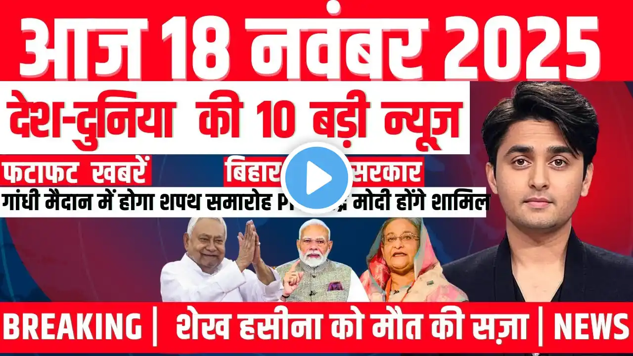 11 Novemb 2025 | Aaj ki 25 Sabse Badi Khabrein | Today Biggest News | Ravish Kumar Primetime #JOIN #breakingnews Join us to know the biggest news of India and the world first! Here you will get the most accurate and fast information about politics, economy, sports, entertainment, technology, weather and viral news. TODAY TOP HEADLINES : Pahalgam terror attack: India bans all imports from Pakistan, third major action after airspace and Indus waters Manipur violence continues even after two years: Deep ethnic rift in Kuki and Meitei communities, thousands displaced Stampede at Lerai Devi temple in Goa, 6 devotees killed, more than 50 injured Karnataka minister's controversial statement: "Give me a suicide bomb Modiji, I will go to Pakistan" Iran-backed Houthis fire long-range missiles at Israel, Trump orders US military to retaliate PM Modi's warning to Pakistan: "This time the decision will be final" Pakistan tests 450 km range Abdali missile, show of power amid tension High alert at Colombo airport after news of Pahalgam attack suspect on Sri Lanka flight Red alert in many states including Delhi-NCR: Warning of strong storm, hailstorm and landslide NIA arrests Tahawwur Rana Interrogation intensified, voice and handwriting samples of 26/11 attack accused taken #trendingnews #super100news #superfastnews #topheadlines #LatestNews #hindinews #newsinhindi #hindisamachar #samachar #news #electionnews #topnews #pmmodi #DLS_News #topnewstoday #100news #upnewstoday #Breaking_News #Main_News #IndiaNews #hindinews #TopHeadlines #PMModiNews #BusinessNews #CricketNews #IPL2025 #WeatherNews General News Keywords: N2R, Breaking News, 18 May 2025, Trending News, Super 100 News, Superfast News, Top Headlines, Latest News, Hindi News, News in Hindi, Hindi Samachar, Samachar, News, Election News, Top News, PM Modi, DLS News, Top News Today, 100 News, UP News Today, Breaking News, मैं समाचार, India News, Hindi News, Top Headlines, PM Modi News, Business News, Cricket News, IPL 2025, Weather News, India News, Breaking News, Aaj Ki Taza Khabar, Hindi News, Today News, Latest News, India Breaking News, Top Headlines, Viral News, Live News, Trending News, Latest Samachar, Bharat News, Desh Duniya Ki Khabar, News Updates, daily news, news of the day, hindi news india, today's main samachar, main news of today 18 may 2025, Political & Government News : 1). Pm narendra modi news today 2). cm yogi news today 3). Rahul gandhi news today speech hindi 4). cm rekha gupta today news 5). Arvind kejriwal news today hindi 6). Cm nitish kumar latest news today 7). Pahalgam Terror Attack 8). India-Pakistan War On Pahalgam Attack LIVE: पाकिस्तान ने तान दी मिसाइलें! युद्ध शुरू LIVE Sports News : 1). Cricket news today 2). IPL 2025 news today Weather & Natural Disaster News: 1). Today's weather information 2). Today's weather news 3). How will the weather be today 4). Today's weather situation 5). Weather update today Your Queries: ravish kumar, ravish kumar news, ravish kumar on waqf board, ravish kumar live, ravish kumar today news hindi, ravish kumar official channel, ravish kumar news today, ravish kumar news today's latest news, ravish kumar news today, ravish kumar news today's, ravish kumar's latest news today, ravish kumar news aaj tak, today's news with ravish kumar, ravish kumar's today's news, ravish kumar's new news today, ravish kumar news today, ravish kumar news live, ravish kumar news channel, ravish kumar news today waqf board, ravish kumar news today live, ravish kumar news today in hindi, ravish kumar news latest, ravish kumar news 24, ravish kumar news today's. "This channel is created for the purpose of providing news and information only. All the information given in this video is based on various public sources, news agencies and reports. We do not support spreading any kind of rumours, misinformation or tarnishing the image of any person, community, religion, government or organization. 🔹 We follow the following laws and policies: ✅ Indian Penal Code (IPC) Section 499 and 500 – We do not defame any person. ✅ IT Act 2000 – The news posted on this channel is taken from certified sources and does not promote fake news. ✅ Copyright Act, 1957 – Any external content (video clips, audio, images) used in the video is only for the purpose of news reporting and providing information, which comes under 'Fair Use'. ✅ IPC Section 153(A) and 295(A) – We do not hurt the feelings of any religion, caste or community We do not support content that hurts religious sentiments. ✅ IPC Section 505(1) & 505(2) – We do not promote any kind of violence or news that incites unrest in society. Copyright Disclaimer: Under Section 107 of the Copyright Act 1976, allowance is made for "fair use" for purposes such as critici