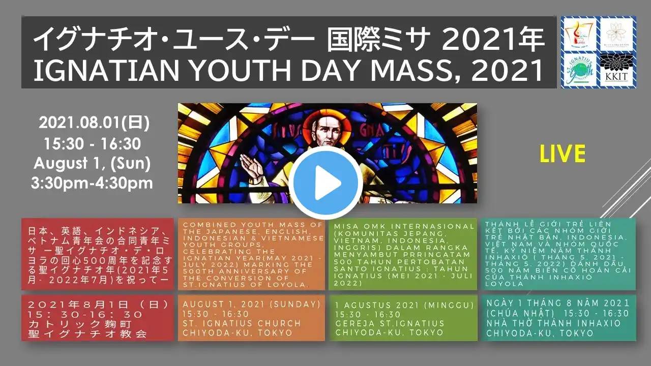 2021年8月8日(日)に参加人数限定で行われる 『年間第19主日 ミサ 』(B年)のライブ配信です。 緊急事態宣言が発出されています。 皆様に自由にミサに与っていただくことができないので、典礼のライブ配信をします。 いつもミサに与るときと同じように会衆の応答を唱え、ともに祈って下さい。 聖歌隊の歌は、事前に録音したものを使っています。 ※ ミサ中のお説教は教会ホームページに後日掲載します。 https://www.ignatius.gr.jp/news/strea... 【本日の聖書朗読箇所】 第1朗読 列王記 (列王記上 19:4-8) 第2朗読 使徒パウロのエフェソの教会への手紙(エフェソ 4:30-5:2 ) 福音朗読 ヨハネによる福音 (ヨハネ 6:51)