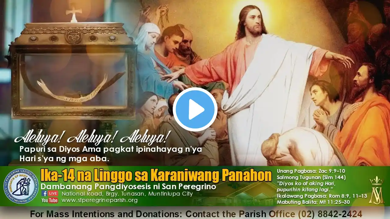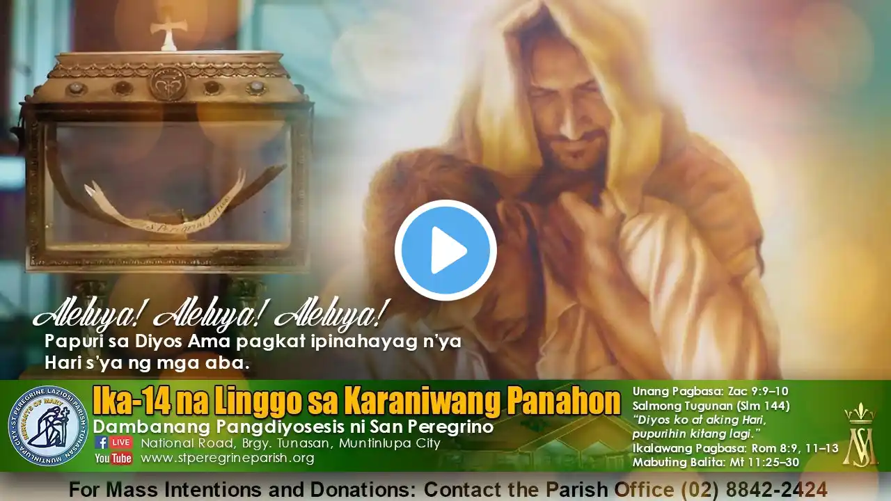 Hulyo 10, 2024 | Banal na Misa | 6:30 ng umaga | Miyerkules ng Ika-14 na Linggo sa Karaniwang Panahon Livestream Operator: John Eryck Dalangin, SOCCOM Para po sa nais magdonate sa ating parokya, maaari po kayong magsadya sa opisina ng ating parokya mula Martes hanggang Linggo, 9:00 AM - 5:00 PM. Maaari niyo din pong ipadala ang inyong donasyon sa parish BDO bank account Account name: RCBMI (Roman Catholic Bishop of Malolos Inc.) - OUR LADY OF MT. CARMEL PARISH Account number: 010528003172 o sa pamamagitan ng GCash Account number: 0916 781 2262 Official Facebook Page: / olmcp.pbsmb Official Youtube Account: / @olmcp_pbsmb #DelCarmen #pulongbuhangin #mtcarmel #mountcarmel #catholicchurch #DelCarmenPBSOCCOM #VicariateOfSantaMaria #DCSCMalolos Disclaimer: The liturgical music we featured in Our Lady of Mt. Carmel Parish are protected by the Fair Use guidelines of Section 107 of the Copyright Act, all rights belong to the rightful owners. No copyright infringement intended if there is a specific part of the melody that matches to another musical piece detected by social media's algorithm.
