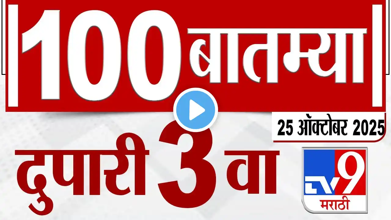MahaFast News 100 महाफास्ट न्यूज 100 3 PM 22 October 2025 Marathi News tv9 marathi #rajthackeraynews #uddhavthackeray #rajuddhavmeet #uddhavthackeraymeetrajthackeray #thackeraybandhu #thackeraybrothers #mns #shivsena #thackerayyuti #aadityathackeray #amitthackeray #avinashjadhav #sandeepdeshpande #sanjayraut #rajanvichare #maharashtrapolitics #rajthackeraynews #uddhavthackeraynews #rajuddhavalliance #marathacommunityvictorycelebrationismaharashtra #marathareservationgr #manojjarangepatil #OBCreservation #marathareservation #maratha #jarangePatil #AntarwaliSarathi #LaxmanHake #azadmaidan #bombayhighcourton #Manoj jarangepatil #manojjarange #manojjarangePatil #manojjarangeMumbairally #manojjarangeMumbaimorcha #azadmaidanmumbai #jarangepatillive #manojjarangelive #manojjarangemumbairoute #manojjarangelive news, #manojjarangeroute #marathaandolan #MarathiNews #PuneNews #MaharashtraNews #LatestMarathiNews #LatestNewsinMarathi #Marathinewslive #NewsMarathi #BreakingNewsinMarathi #LiveMarathi News #NewsinMarathi #MarathiBatmya #Marathibreakingnews #MarathinewsTop #headlineCrimeNews #Politicsnews #PoliticsnewsinMarathi #Politicsliveupdates #UddhavThackerayPress live, #uddhavThackeraynews #uddhavThackerayspeech #uddhavThackerayshoistingpeechinmarathi #Maharashtranews #marathinews #MumbaiShivenaMelava #shivsena #uddhavThackeray #Eknathshinde #Maharashtrapolitics #UddhavThackerayledShivSenafactions #BMCElections2025 #SushilKediaMarathiLanguage#UddhavRajThackerayjointvictoryrallyUddhavRaj #Thackerayvictoryrally #uddhavThackeraylive #ThackerayBrothersUniteatVijayiMelava #rajthackeray #uddhavthackeray #MarathiVSHindi #PrakashAmbedkar #Congress, #VBA, #shivsena #UBT #MNS #rajthackeray #uddhavthackeray #VijayiMelava # UddhavRajThackeray jointvictoryrally #UddhavRajThackerayvictoryrally #uddhavthackeraysabha महाराष्ट्रासह जगभरातल्या बातम्या सर्वात वेगवान पाहण्यासाठी आताच क्लिक करा : https://www.youtube.com/live/KdQ44_AGuR4 #LawAndOrder #PoliceAction #NagpurIncident #LocalConflict #PublicSafety #NagpurTension #Maharashtrabudgetlive #Maharashtrabudgetnews #santoshdeshmukhcasehearing #santoshdeshmukhcase #walmikkarad #sudarshanghule #DeputyCMAjitPawartopresentMaharashtrabudget #AjitPawar #DeputyCMAjitPawar #MaharashtraBudgetforFY2025 #Mahayuti #parliamentlive #shivsena #ncp #devendrafadnavis #EknathShinde #Maharashtracm #Maharashtranews #marathinews #SantoshDeshmukh #SantoshDeshmukhCaseUpdate #beedcase #walmikkarad #dhananjaydeshmukh #Sharadpawar #UddhavThackeray #RajThackeray #ManojJarangePatil #NanaPatole #SanjayRaut #MaharashtraPolitics #MaharashtraNews #PMNarendraModi #EknathShinde #MVAvsMahayuti #UddhavThackeray #SharadPawar#ManojJarangePatil #NanaPatole #SanjayRaut #MaharashtraPolitics #MaharashtraNews #PMNarendraModi #EknathShinde #MVAvsMahayuti #UddhavThackeray #SharadPawar #MahayutiGovernment #Sharadpawar#NanaPatole #SanjayRaut #MaharashtraPolitics #MaharashtraNews #PMNarendraModi #EknathShinde #MVAvsMahayuti #UddhavThackeray #SharadPawar टीव्ही ९ मराठीवर राजकारणातल्या बातम्यांचे अपडेट पाहा सर्वात आधी! tv9 marathi live update पाहण्यासाठी लॉग इन करा https://www.tv9marathi.com/ tv9 marathi चे यूट्यूब चॅनेल सब्स्क्राईब करण्याची लिंक https://goo.gl/xRU2XT marathi news headline | marathi news mumbai | marathi news maharashtra |marathi news breaking |marathi news | tv9 marathi batmya video https://www.tv9marathi.com/ is a 24/7 Marathi-language News Channel based in Mumbai, Maharashtra that launched in 2009. TV9 group is India's largest media group. Get the all Breaking news, latest top stories, current affairs, Mumbai News, Pune News on TV9 Marathi. ► Facebook: / tv9marathi ► Twitter: / tv9marathi ►Youtube : / tv9marathilive ► Download TV9 Marathi App : https://play.google.com/store/apps/de... ► Latest Video : / @tv9marathilive ► Special Reports : • Playlist ► 4 Minutes 24 Headlines : • 4 मिनिट 24 हेडलाईन्स | 4 Minutes 24 Headlines ► टॉप 9 न्यूज | TOP 9 News : • टॉप 9 न्यूज | TOP 9 News ► Superfast 50 : • Superfast 50 | सुपरफास्ट 50 ► Mahafast News 100 : • Maharashtra 100 News | सर्व बातम्या | महाफ... Maharashtra election, Mahayuti, Maharashtra Chief Minister, maharashtra new cm, Devendra Fadnavis, Eknath Shinde, Ajit Pawar, Devendra Fadnavis new CM, Fadnavis to be sworn in as CM, Maharashtra CM News Live, Maharashtra CM News, BJP Legislative Party leader, Mahayuti government in Maharashtra, Mahayuti government, maharashtra government formation, maharashtra cabinet meeting, maharashtra cabinet ministers, maharashtra New Government, shiv sena cabinet ministers maharashtra,