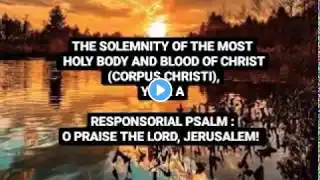 To support my ministry via Patreon: https://www.patreon.com/chrisbrunelle... To purchase this collection: https://www.ocp.org/en-us/collections... The Most Holy Body and Blood of Christ (Corpus Christi) June 11, 2023 Psalm 147:12-13, 14-15, 19-20 Praise The Lord, Jerusalem. Alleluia! Glorify the Lord, O Jerusalem; praise your God, O Zion. For he has strengthened the bars of your gates; he has blessed your children within you. He has granted peace in your borders; with the best of wheat he fills you. He sends forth his command to the earth; swiftly runs his word! He has proclaimed his word to Jacob, his statutes and his ordinances to Israel. He has not done thus for any other nation; his ordinances he has not made known to them. Alleluia Music: Owen Alstott, copyright 1977, 1990