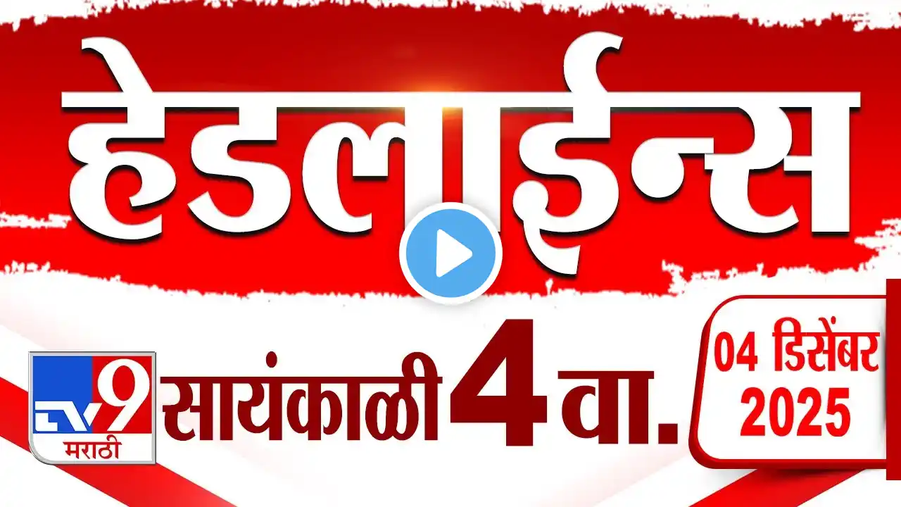 Tv9 Marathi News Top Headline Today | 01 December 2025 | 7 AM | 4 Minute 24 Headline Maharashtra #MaharashtraPolitics #Maharashtra #MarathiNews #MaharashtraNews #LatestMarathiNews #LatestNewsinMarathi #Marathinewslive #NewsMarathi #BreakingNewsinMarathi #LiveMarathi #NewsinMarathi #MarathiBatmya #Marathibreakingnews #MarathinewsTop #Politicsnews #PoliticsnewsinMarathi #Politicsliveupdates #TV9Marathi #Devendrafadnavis #AjitPawar #EknathShinde #BJP #Mahayuti #MVA #UddhavThackeray #RajThackeray #SharadPawar #Congress #ShivSena #ElectionNews #ZPElection #ElectionsWithTV9Marathi #ElectionsWithTV9 महाराष्ट्रासह जगभरातल्या बातम्या सर्वात वेगवान पाहण्यासाठी आताच क्लिक करा : https://www.youtube.com/live/KdQ44_AGuR4 टीव्ही ९ मराठीवर राजकारणातल्या बातम्यांचे अपडेट पाहा सर्वात आधी! tv9 marathi live update पाहण्यासाठी लॉग इन करा https://www.tv9marathi.com/ tv9 marathi चे यूट्यूब चॅनेल सब्स्क्राईब करण्याची लिंक https://goo.gl/xRU2XT marathi news headline | marathi news mumbai | marathi news maharashtra |marathi news breaking |marathi news | tv9 marathi batmya video https://www.tv9marathi.com/ is a 24/7 Marathi-language News Channel based in Mumbai, Maharashtra that launched in 2009. TV9 group is India's largest media group. Get the all Breaking news, latest top stories, current affairs, Mumbai News, Pune News on TV9 Marathi. ► Facebook: / tv9marathi ► Twitter: / tv9marathi ►Youtube : / tv9marathilive ► Download TV9 Marathi App : https://play.google.com/store/apps/de... ► Latest Video : / @tv9marathilive ► Special Reports : • Playlist ► 4 Minutes 24 Headlines : • 4 मिनिट 24 हेडलाईन्स | 4 Minutes 24 Headlines ► टॉप 9 न्यूज | TOP 9 News : • टॉप 9 न्यूज | TOP 9 News ► Superfast 50 : • Superfast 50 | सुपरफास्ट 50 ► Mahafast News 100 : • Maharashtra 100 News | सर्व बातम्या | महाफ...