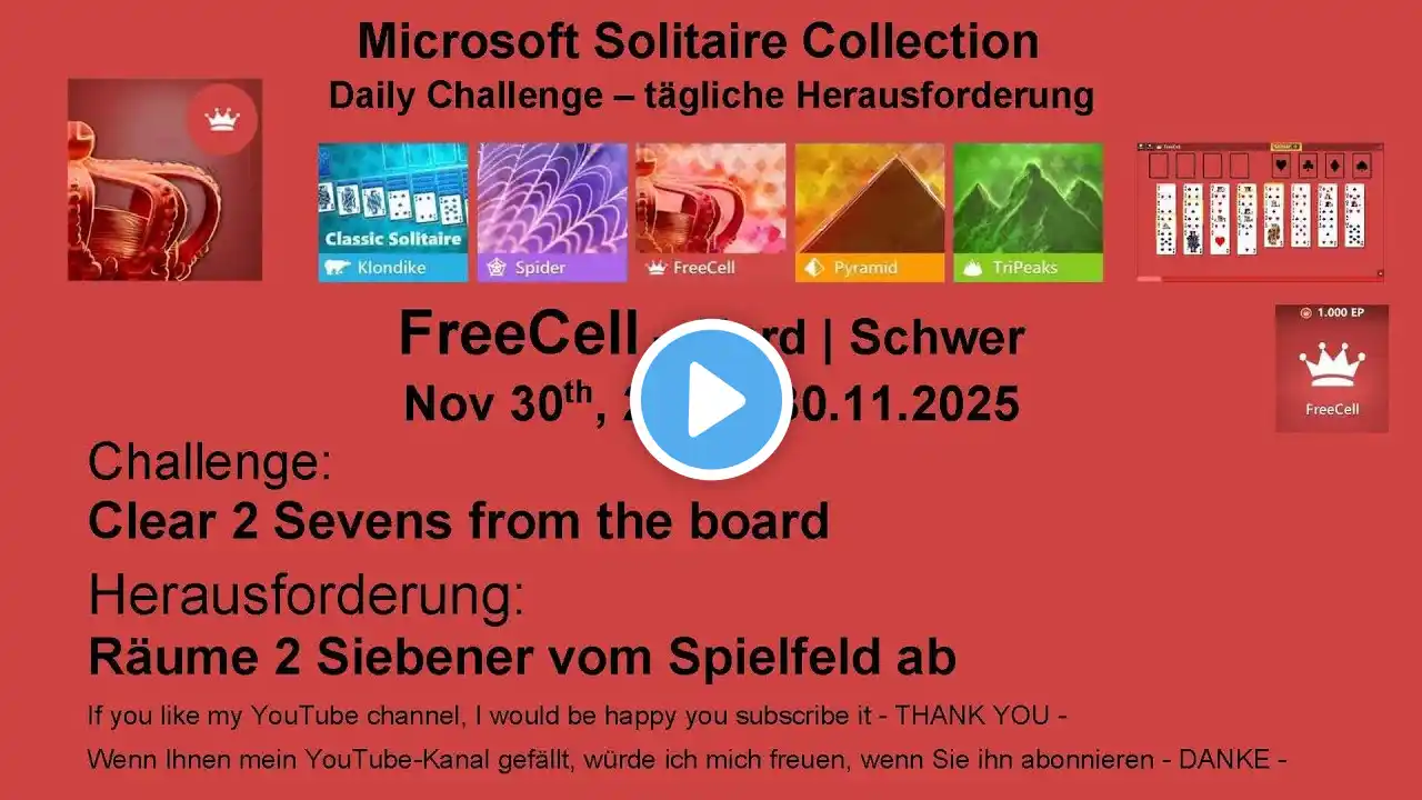 Solution to Microsoft Solitaire Collection | November 30, 2025, Microsoft Solitaire Daily Challenge | FreeCell Hard Lösung für Microsoft Solitaire Collection | 30. November 2025, tägliche Herausforderung | FreeCell Schwer