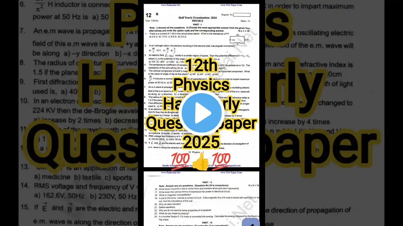 12th physics Half Yearly exam 2025 | 70/70 | important questions,12th physics Half Yearly exam question paper 2025 PDF: Top 30 Questions 👇 https://somethingavideo.blogspot.com/... Confirm 70/70 Questions 👇 https://somethingavideo.blogspot.com/... #12thphysics #halfyearlyquestionpaper #importantquestions #tamilnadu