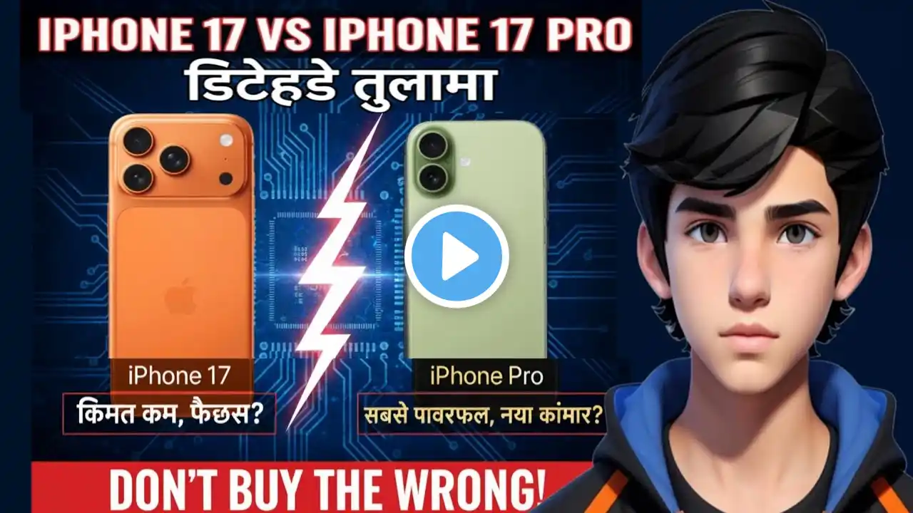 iPhone 17 vs iPhone 17 Pro Detailed Comparison | Don't Buy The Wrong! (HINDI) This video is regarding iPhone 17 and iPhone 17 Pro, as there is 50K difference in price, So which one should you Buy? The video includes everything like display, camera, battery life etc, so make sure to watch this video till end to know everything about them. Video Timestamps: Introduction- 00:00 Design & Looks- 00:48 Built & Features- 02:33 Display- 04:50 Earpiece & Haptics- 06:03 Speakers- 06:42 Networks & Wifi- 07:06 Performance- 07:27 Camera- 10:40 Battery Life- 15:08 Conclusion- 16:15 ************************************************** Buy iPhone 17 Pro: https://amzn.to/48NCZdR Buy iPhone 17: https://amzn.to/4od6sCf iPhone 17 vs 16 Pro: • iPhone 17 vs iPhone 16 Pro Comparison | iP... iOS 26 Features: • iOS 26 Final Version Released | 100+ iOS 2... iOS 26 Battery Drain Tips: • iOS 26 Battery Drain? Main Reason & Tips T... S24 BBD Unboxing: • Flipkart BBD Samsung Galaxy S24 at ₹37,329... iPhone 13 To 17 iOS 26 Battery Test: • iPhone 17 vs 16 vs 15 vs 14 vs 13 Battery ... iPhone 17 Review after 17 days: • iPhone 17 after 17 Days (REVIEW) | Best iP... iPhone 16 vs iPhone 17: • iPhone 17 vs iPhone 16 Detailed Comparison... Samsung S24 vs iPhone 15 in 2025: • iPhone 15 vs Samsung S24 Detailed Comparis... Related Topics iPhone 17 vs iPhone 17 Pro iPhone 17 Pro vs iPhone 17 in Hindi iPhone 17 vs iPhone 17 Pro Camera iPhone 17 vs iPhone 17 Pro Performance iPhone 17 vs iPhone 17 Pro Battery Life iPhone 17 Pro vs 17 Comparison #iPhone17 #iPhone17Pro #GadgetsLife Thanks For Watching... SUBSCRIBE, LIKE , and SHARE!