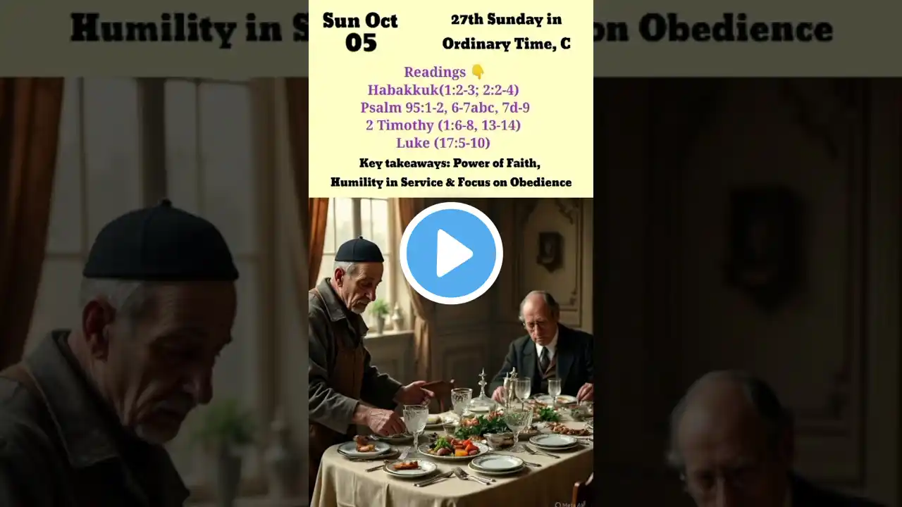 Today's Catholic Bible Reading & Gospel Reflection for 5th October 2025 , Twenty-seventh Sunday in Ordinary Time Year C Homily for 5th October 2025, the Twenty - Seventh Sunday in Ordinary Time Year C • Homily for the 27th Sunday Ordinary Time Y... From the Gospel according to Luke 17:5-10 The apostles said to the Lord, "Increase our faith." The Lord replied, "If you have faith the size of a mustard seed, you would say to this mulberry tree, 'Be uprooted and planted in the sea,' and it would obey you. "Who among you would say to your servant who has just come in from plowing or tending sheep in the field, 'Come here immediately and take your place at table'? Would he not rather say to him, 'Prepare something for me to eat. Put on your apron and wait on me while I eat and drink. You may eat and drink when I am finished'? Is he grateful to that servant because he did what was commanded? So should it be with you. When you have done all you have been commanded, say, 'We are unprofitable servants; we have done what we were obliged to do.'" DAILY CATHOLIC GOSPEL READING & WORDS OF THE HOLY FATHER https://www.vaticannews.va/en/word-of... Daily Catholic Mass Reading Daily Catholic Bible Reading Audio Visual Bible HD Bible Reading #luke17:5-10 #god #faith #ourduty #servants #27thSundayOrdinaryTime #ThirstforCHRIST#GospelReadingforToday #dailygospelreflection #GospelandReflection #dailygospel #catholicgospel#gospeltoday #todaysreadings #dailycatholicgospelreading #catholicreflection #dailygospelreading #october2025 today's holy mass reading,today's catholic mass reading,daily mass readings 2025,Today's Gospel Reading,today's mass reading catholic,mass readings english,Gospel Reading,mass,catholic,bible,the word today,mass readings for today,catholic mass reading,catholic mass today,catholic mass,catholic daily mass readings 2025,catholic readings today,daily catholic readings, mass readings and reflections,catholic mass reading,mass readings for today,daily gospel reflection,catholic daily mass readings and reflection,catholic daily mass readings today,catholic daily mass reflection,daily catholic readings,daily mass readings and reflections,today's catholic mass readings and reflections,daily mass readings,today's gospel reading,gospel reading for today,today's mass reading catholic #TodayGospelReading #TodayGospelReading #GospelandReflection #HolyMassReadings #gospel #reflection #catholicprayers #catholicgospel #catholicreflection #catholicdailyreflectiontoday#reading #catholic #catholicmass #catholicprayer #eucharist #english #amen #hallelujah #todaygospelreading #gospelreadingfortoday #gospelandreflection #holymassreadings